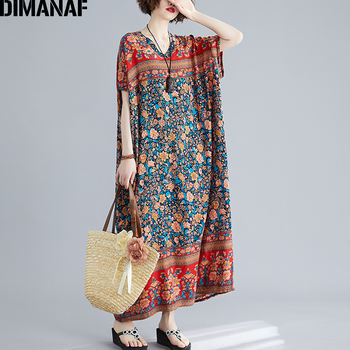 DIMANAF Plus Size Dress Women Clothing Summer Sundress Bohemian Floral Print Elegant Lady Vestidos Loose Oversize Maxi Dress 5XL