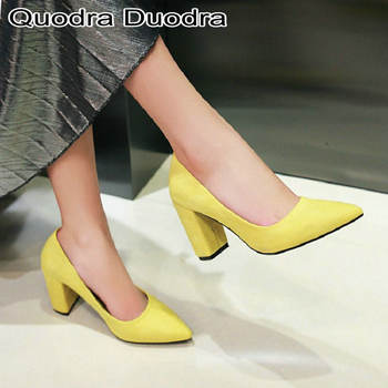2020 autumn shallow pointed toe faux suede woman shoes block high heels yellow grey red women stilettos dress pumps size 33-43