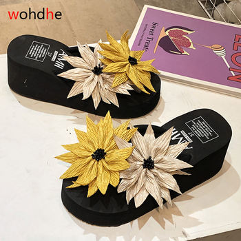 wohdhe Hand made DIY Non-slip Platform High Heels 6cm Flip Flops Flower Summer Beach Slippers High Quality Women ‘s Shales