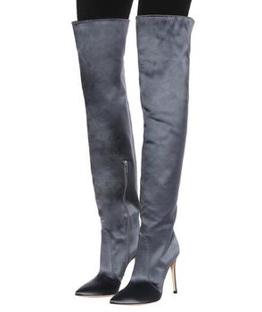 Winter Gray Woman Fashion Pointed Toe Side Zipper V Shape Back Stiletto Heels Over The Knee Thigh Long Boots Lady Plus Size 46