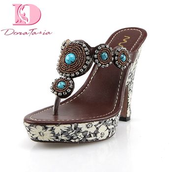 Doratasia Best Quality Brand Shoes Women Flip Flops Genuine Leather High Heels Platform Shoes Woman Casual Summer Slippers