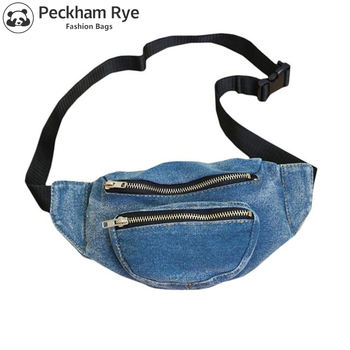 2 Zipper pockets Jeans women’s fanny pack for women denim waist bags for gilrs denim chest bag for travel money phone purse