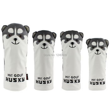 Golf Club Headcover Lovely Husky Golf Driver Head Cover Cartoon Animal #1 #3 #5 #7 Woods PU Leather HeadCover Dustproof Covers