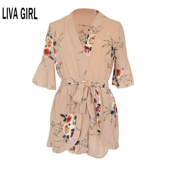 Backless Elastic Waist Print Mini Romper overall Jumpsuit Women pleated Overalls Playsuit Jumpsuit