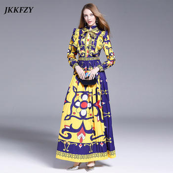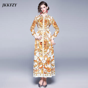 Women Autumn Winter Runway Dress Long Sleeve Lapel Plus Size Palace Printed Vintage Dresses Elegant Party Maxi Dresses For Women