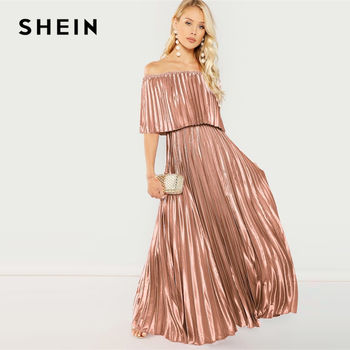 SHEIN Flounce Foldover Front Off Shoulder Pleated Ruffle High Waist Spring Elegant Pink Party Dresses