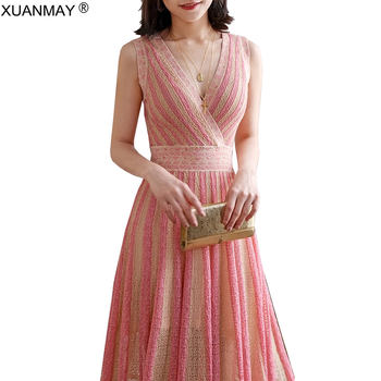 Vest dress Over the knee Stripe long style Vest Slim Sweater Vest Dress Female