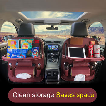 Car Seat Back Bag Leather With Tray Car Backseat Organizer Trunk Bag Protectors Multifunctional Seat Crevice Storage Bag