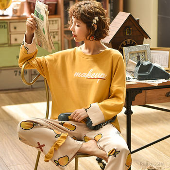 Women Knitted Cotton Pijama Winter Pajama Sets Long Sleeve Two Piece Pyjama Letter Lingerie Night Sleepwear Women’s Pajamas