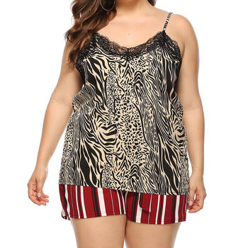 Plus Size Women Pajamas Lace Zebra Print Silk Pyjamas Home Clothing Luxury
