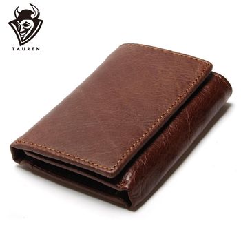 RFID Wallet Antitheft Scanning Leather Wallet Hasp Leisure Men’s Slim Leather Mini Wallet Case Credit Card Trifold Purse