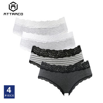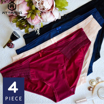 ATTRACO Women’s Lace Hipster Underwear V String Panties Briefs Cotton 4 Pack Bow tie Breathable Transparent Hot Sale Mid Waist