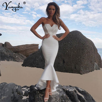 Mermaid off shoulder Tube top white bodycon Backless Maxi Dress