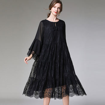 Spring Fashion elegant lace long Dress flare sleeves ruffles temperament maxi dress party dress longos vestidos plus size XXXXL