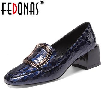 FEDONAS Female Genuine Leather Retro Party Shoes Woman Spring Autumn Slip-on Shallow Shoes Women New Square Toe High Heels Pumps