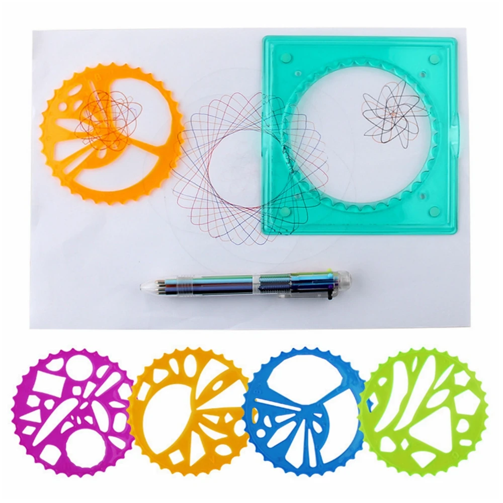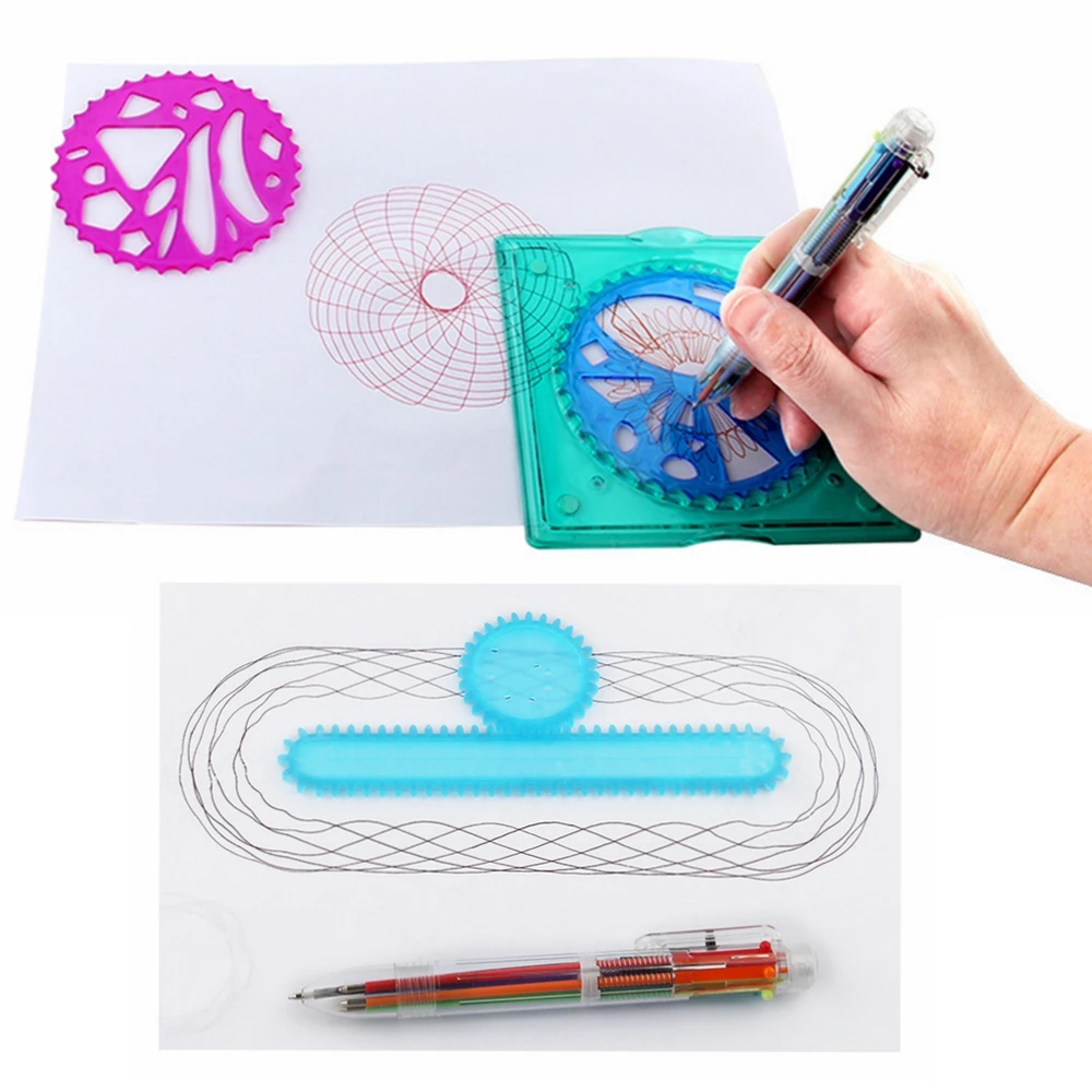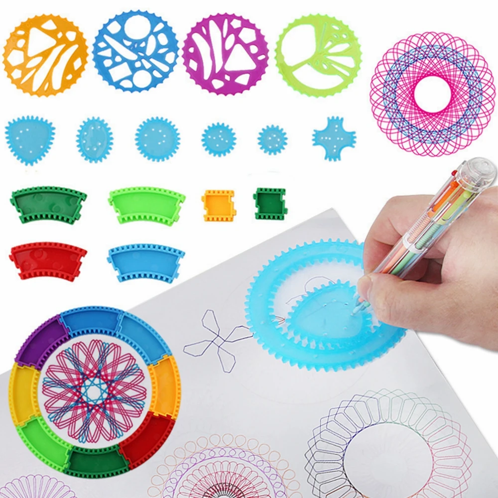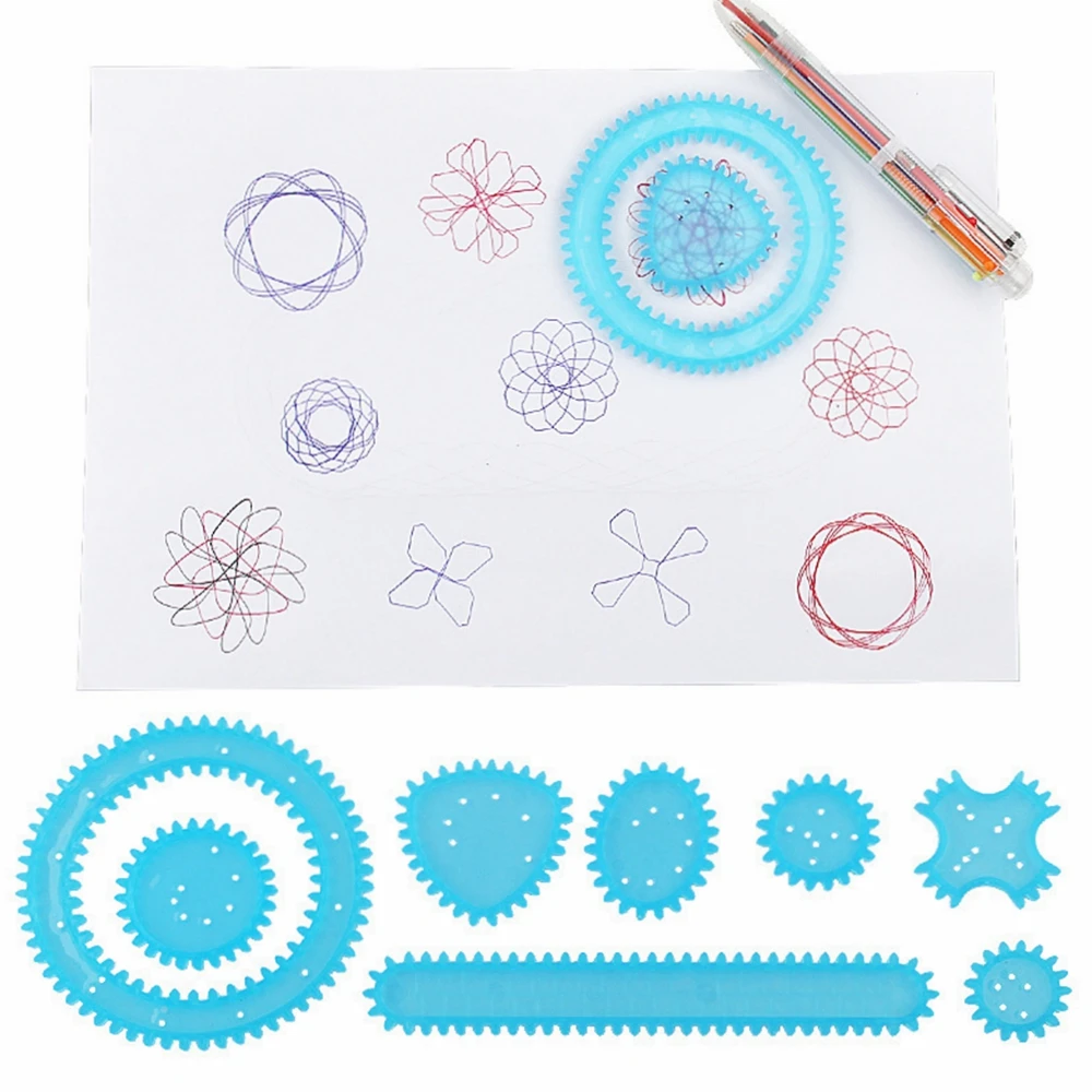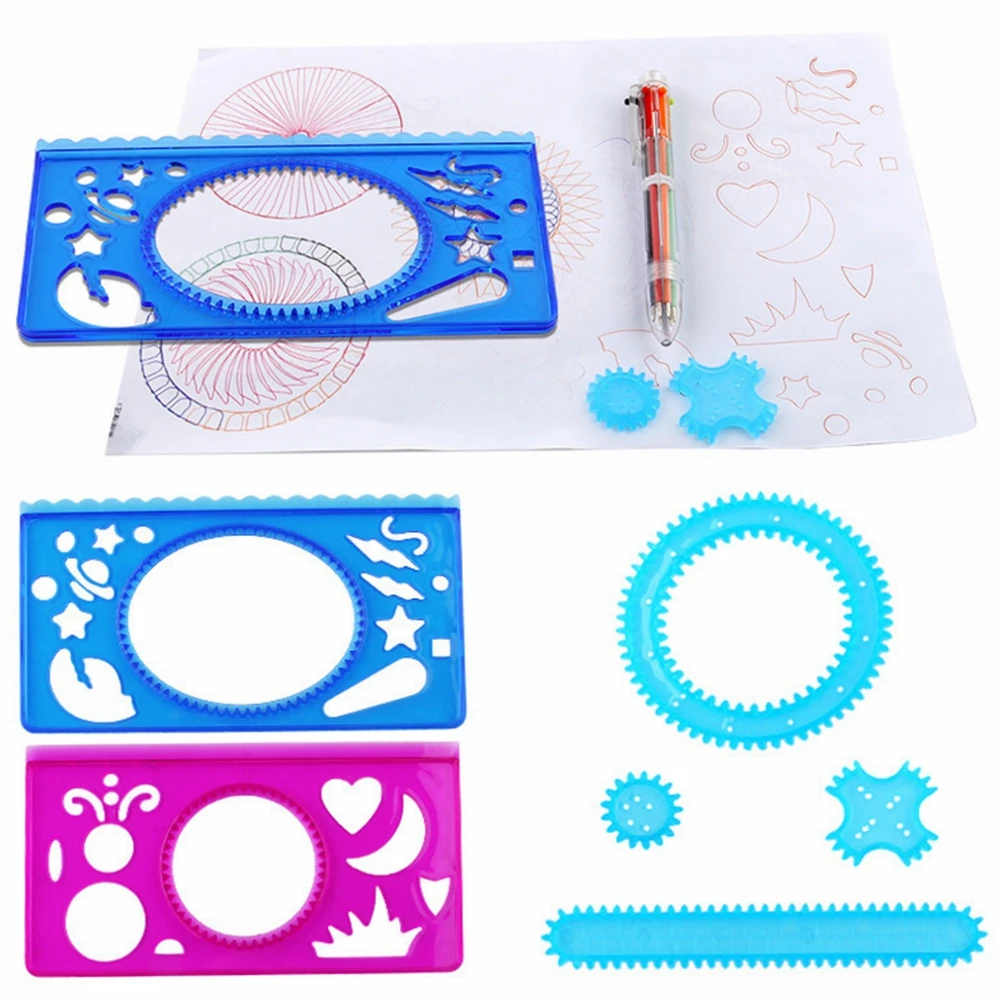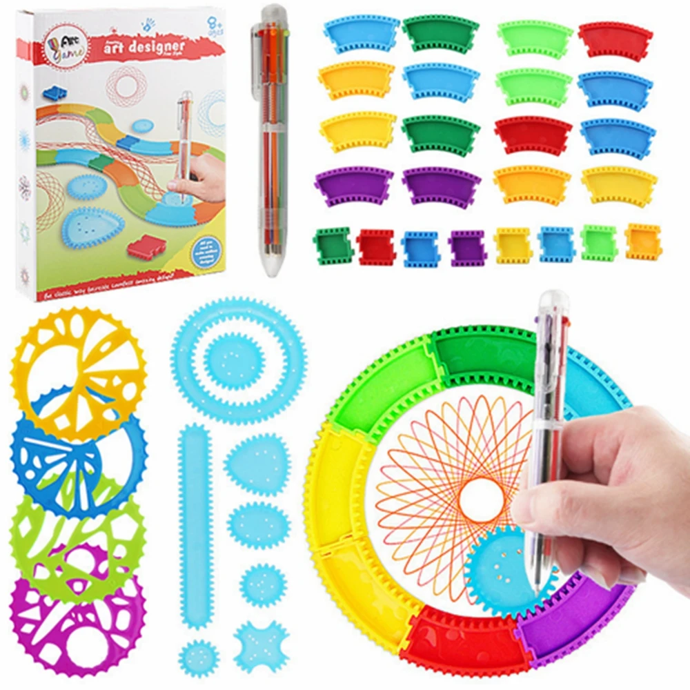 Puzzle Spirograph Art Design Drawing Toys Set Interlocking Gears&Wheels Ruler Accessories Creative Educational Toy for children