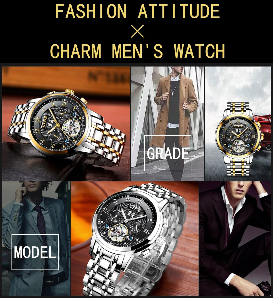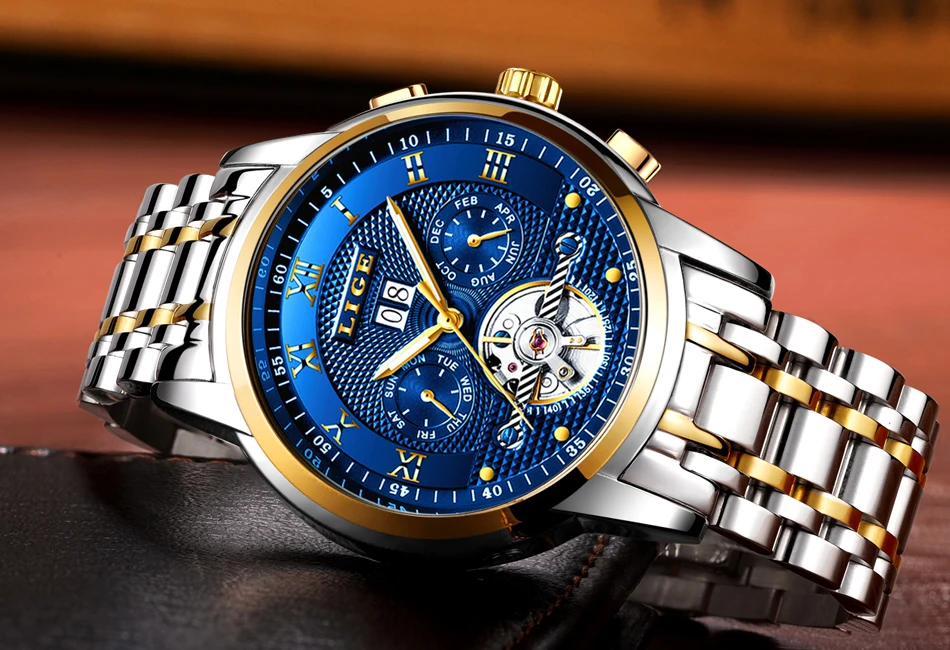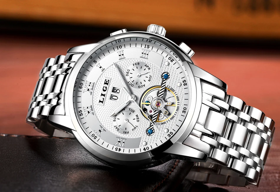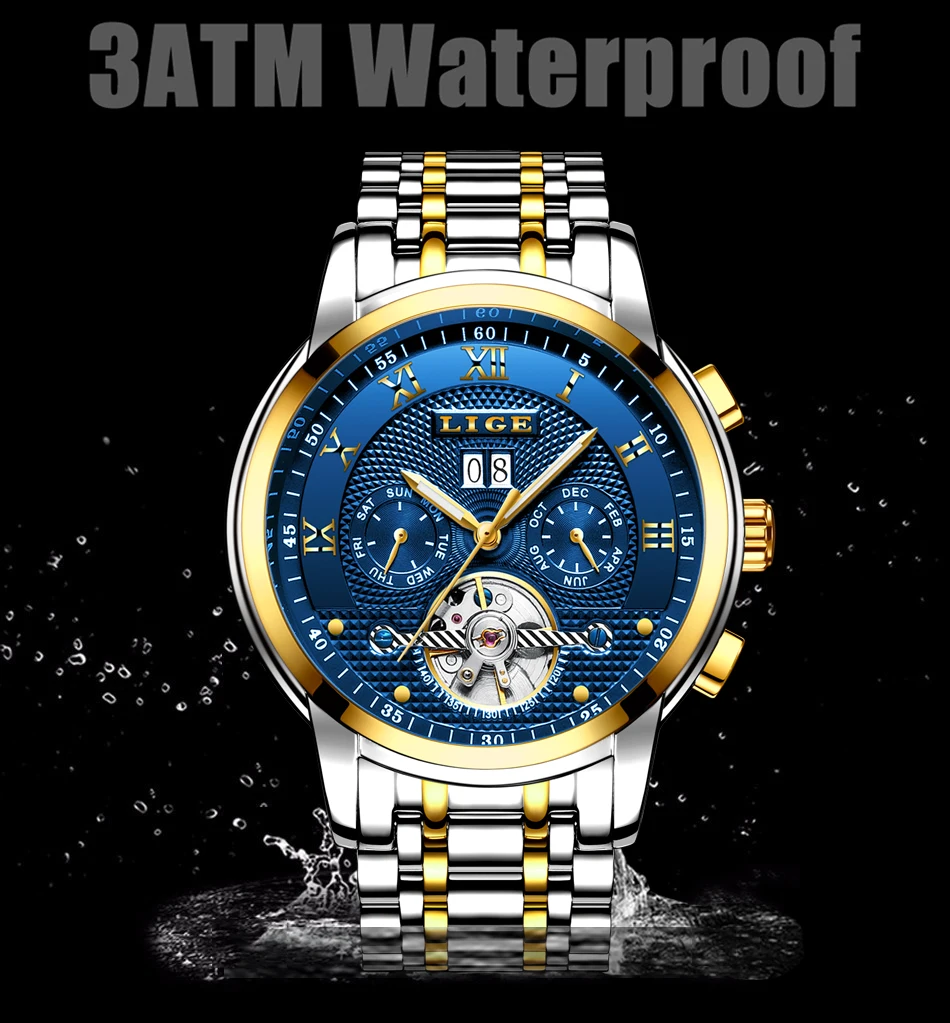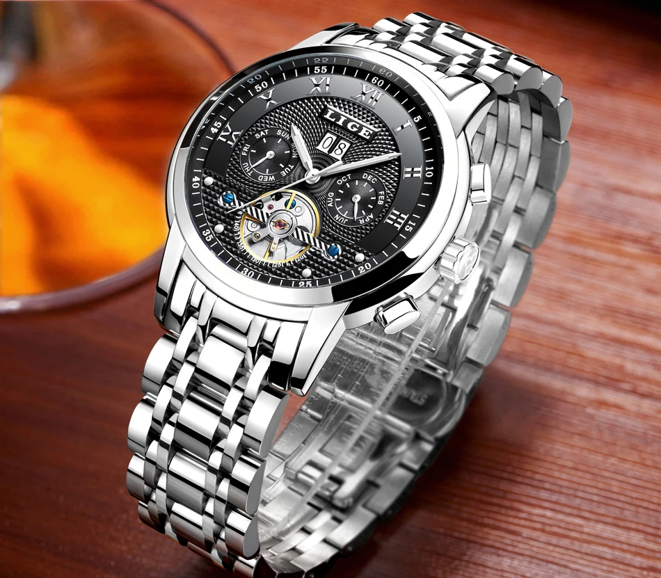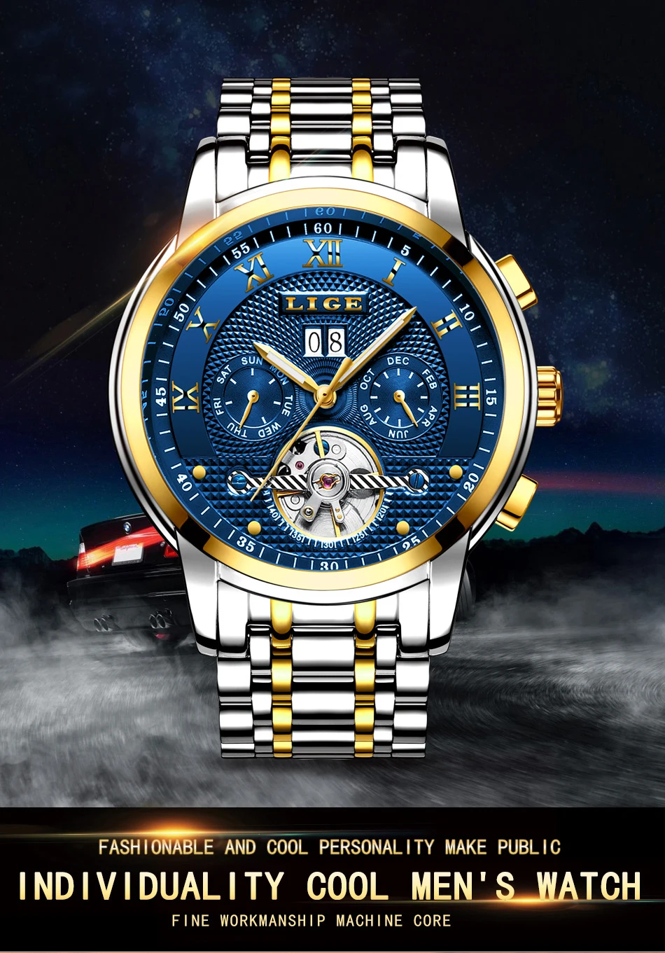 Relogio Masculino LIGE Mens Watches Top Brand Luxury Automatic Mechanical Watch Men Full Steel Business Waterproof Sport Watches