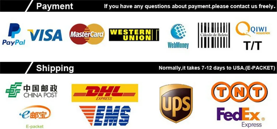 Packages from our warehouse in China will be shipped by ePacket or EMS depending on the weight and size of the product. Packages shipped from our US warehouse are shipped through USPS.