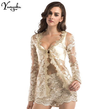 Playsuit With Lace Two Pieces Romper Short Mesh Summer Beach Club Elegant Jumpsuit 2020 New Arrivals V Neck Overalls
