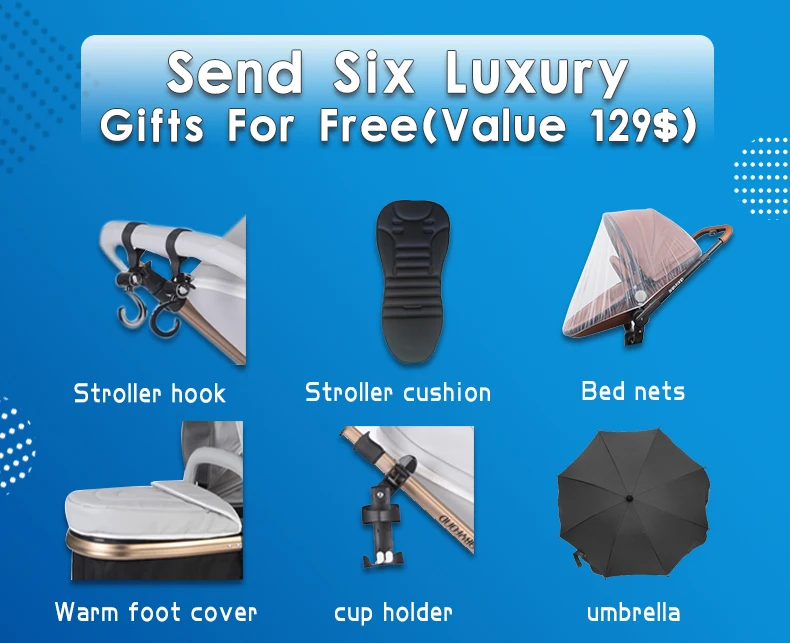 Now buy stroller to send four free gifts, cushions, leg cover, mosquito nets, hooks,cup holder,toys .