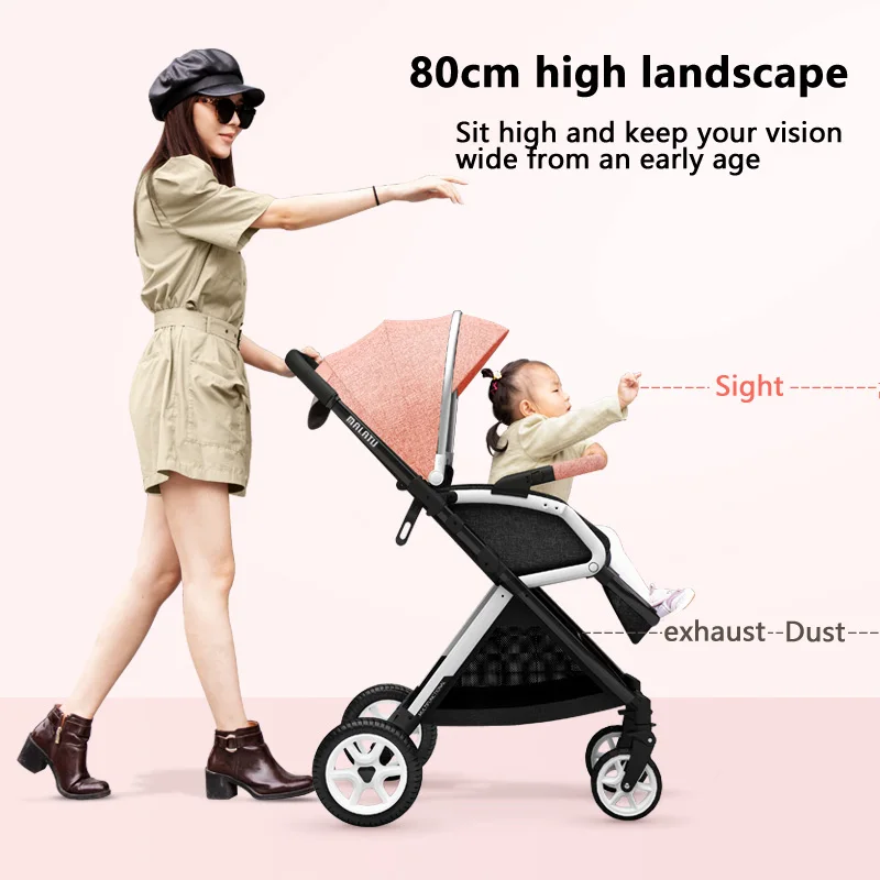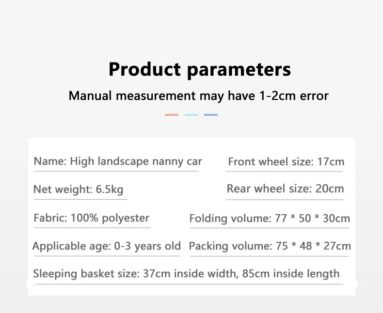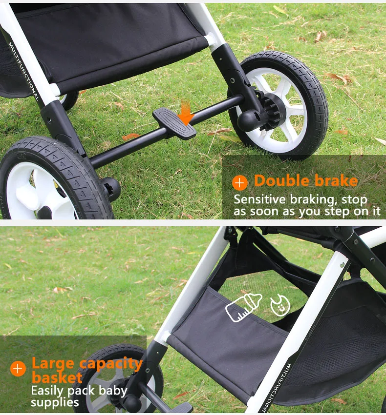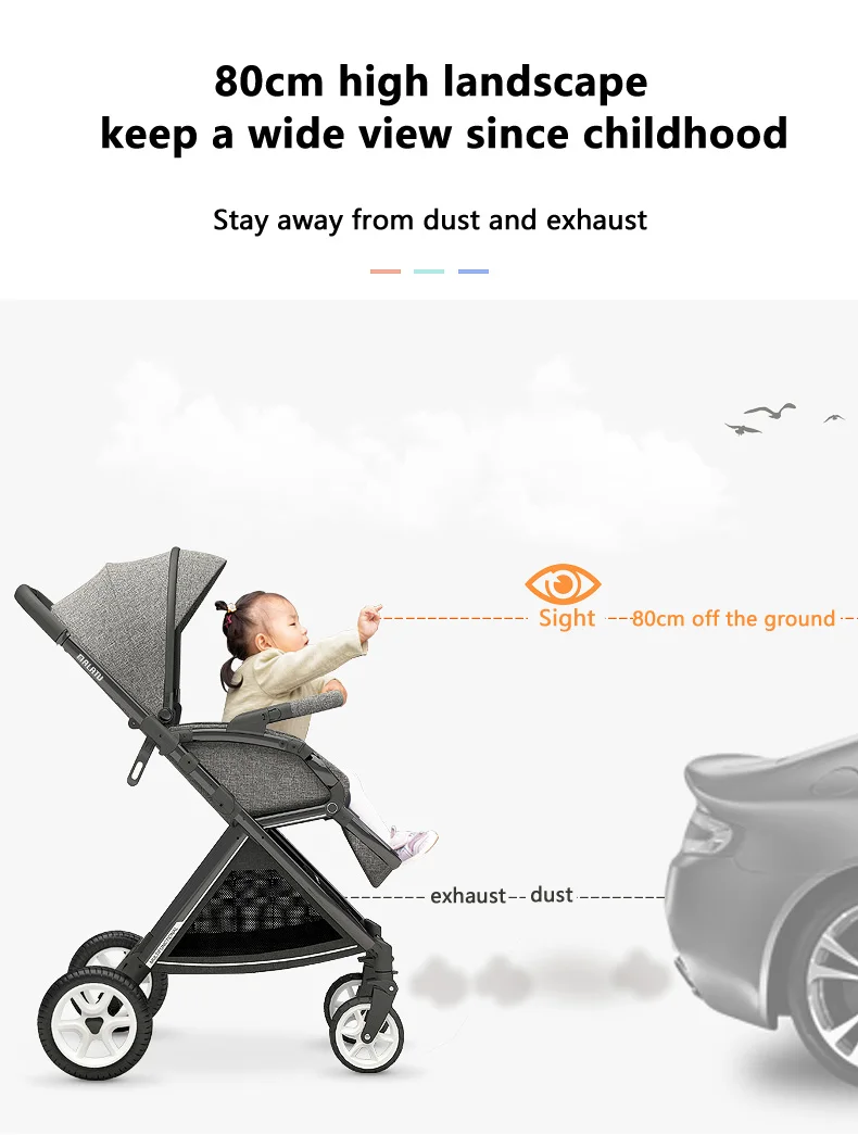 1. Suitable for age 0-4 years. 2. The baby carriage is implemented in two directions. 3.Frame material: aluminum alloy 4, load-bearing, 25kg 5.Wheel type: Natural rubber 6, basket fabric: Oxford cloth 7.Baby stroller net weight 6.5KG 8.Foldable with one hand