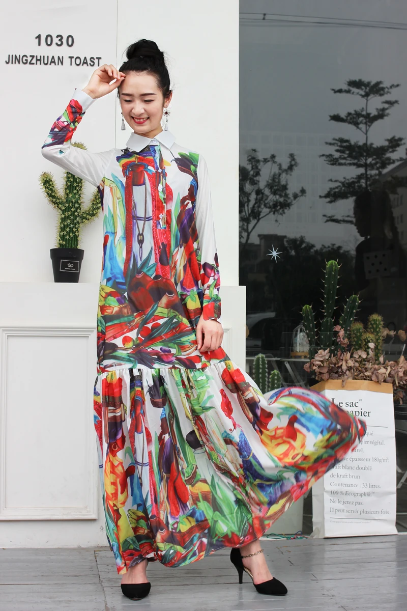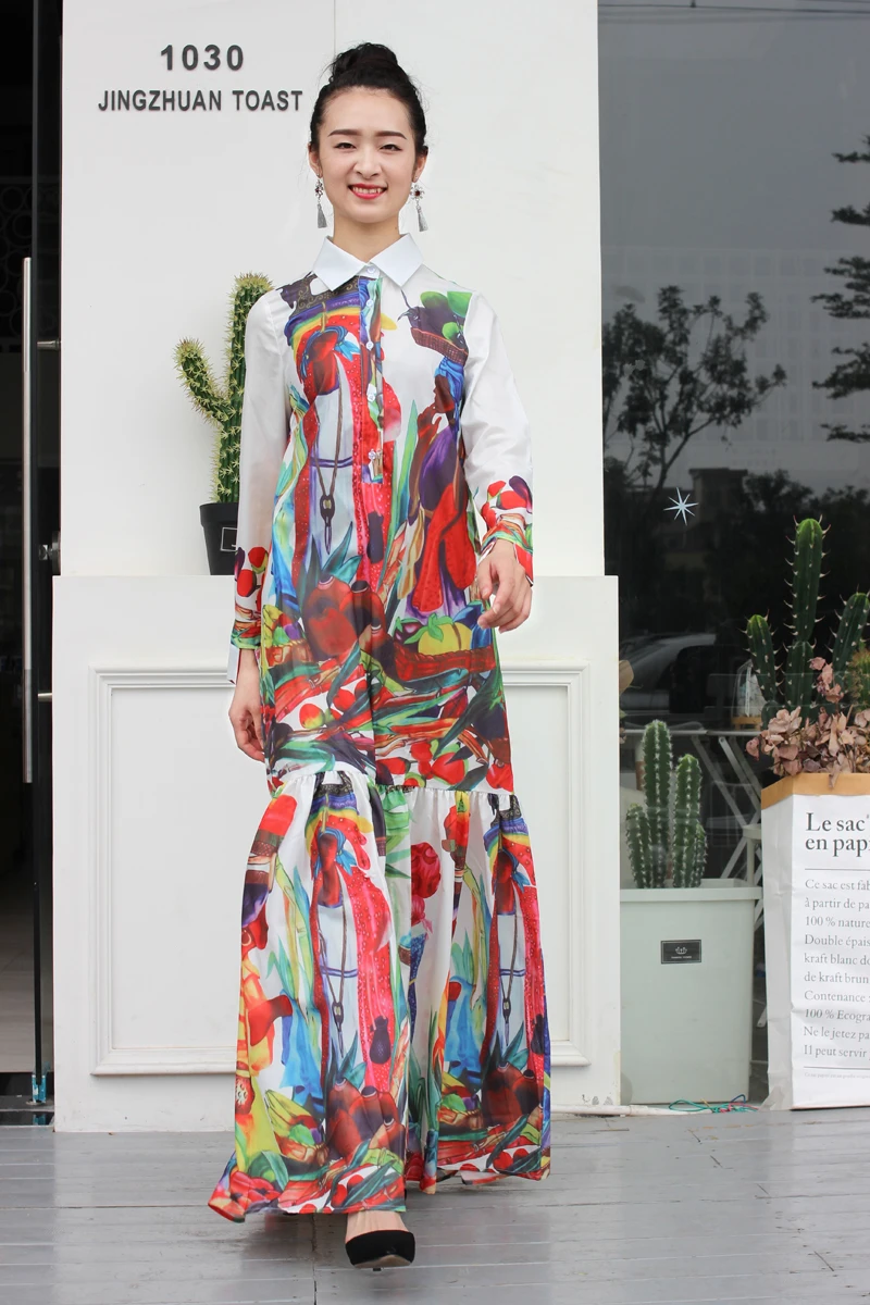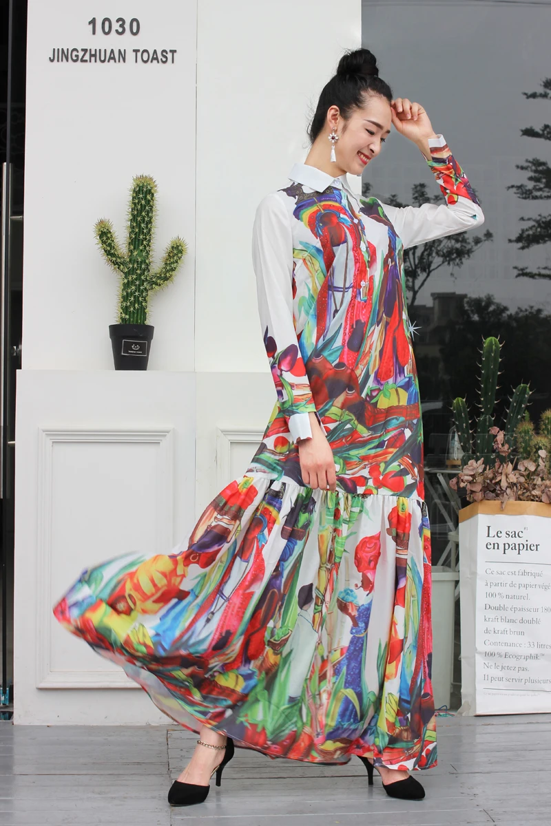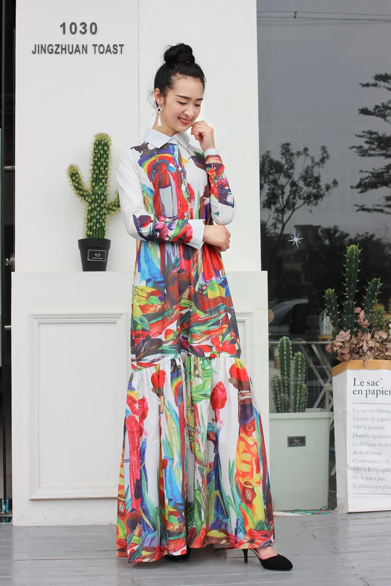 S-4XL High Quality Boho Hippie Temperament Retro Holiday Leisure Long Sleeved Beach Maxi Dress
