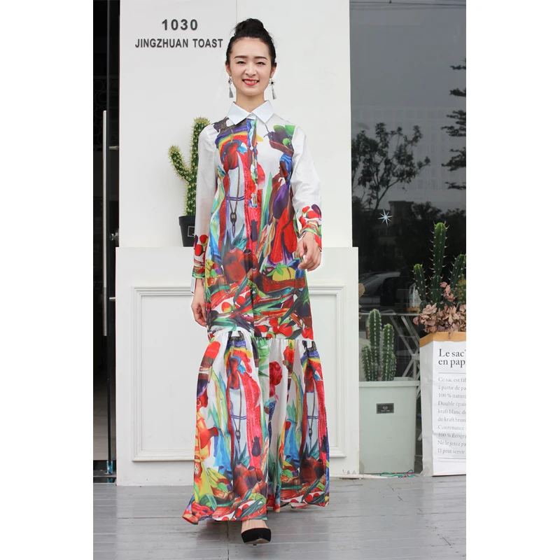 S-4XL High Quality Boho Hippie Temperament Retro Holiday Leisure Long Sleeved Beach Maxi Dress