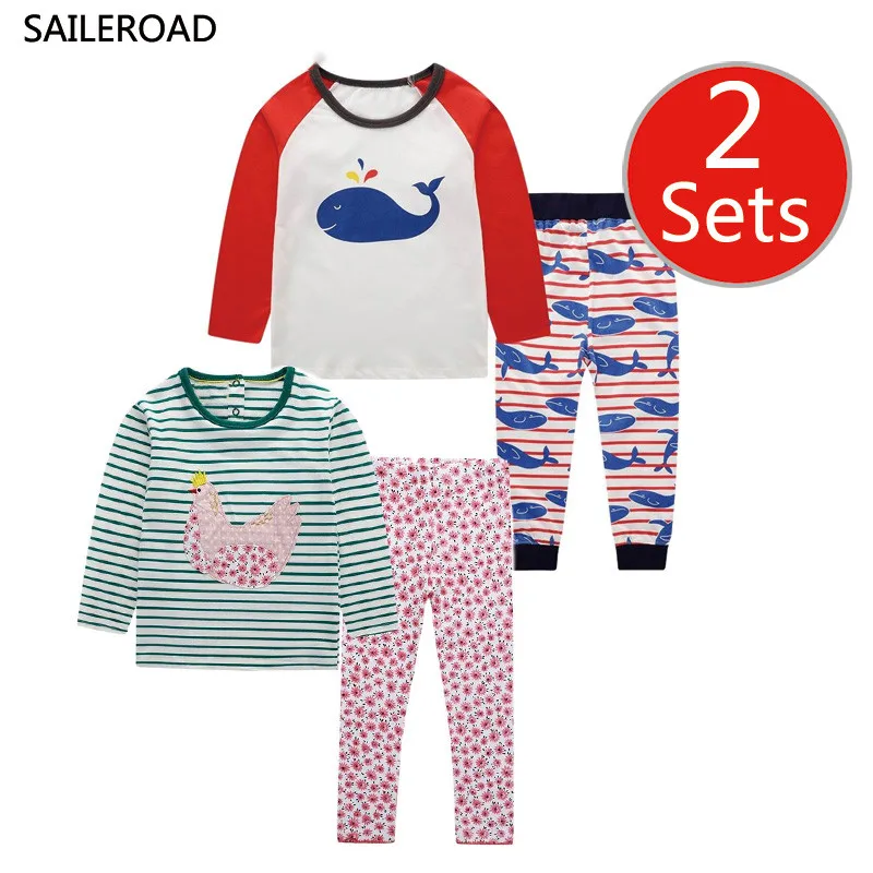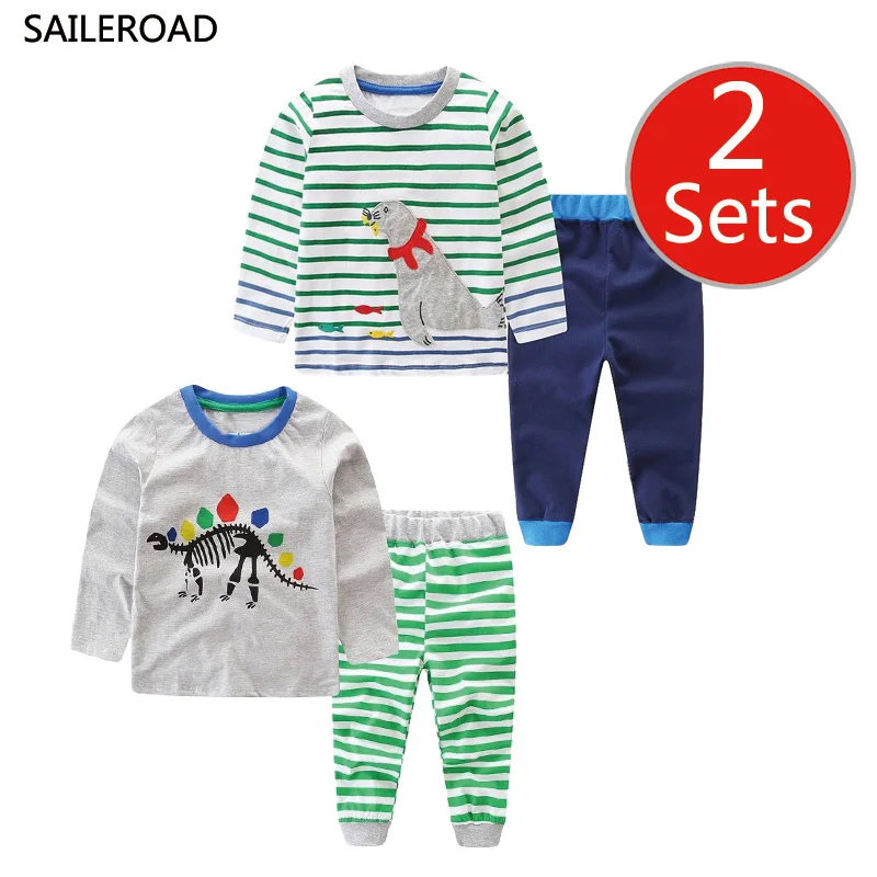 SAILEROAD 2 Set Children’s Cartoon Tractor Clothes For Boys Pajamas Set Girls Animals Printed Clothing Cotton Kids Outfits Suits