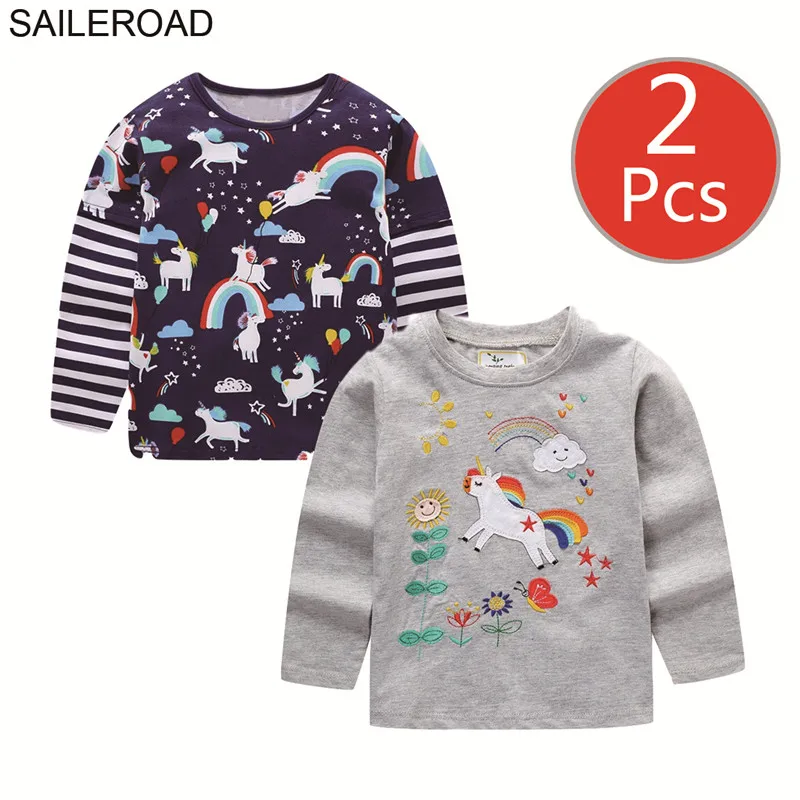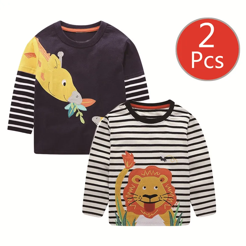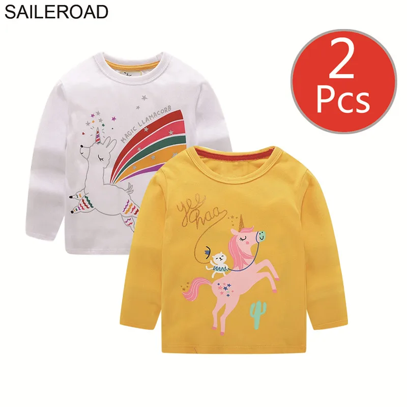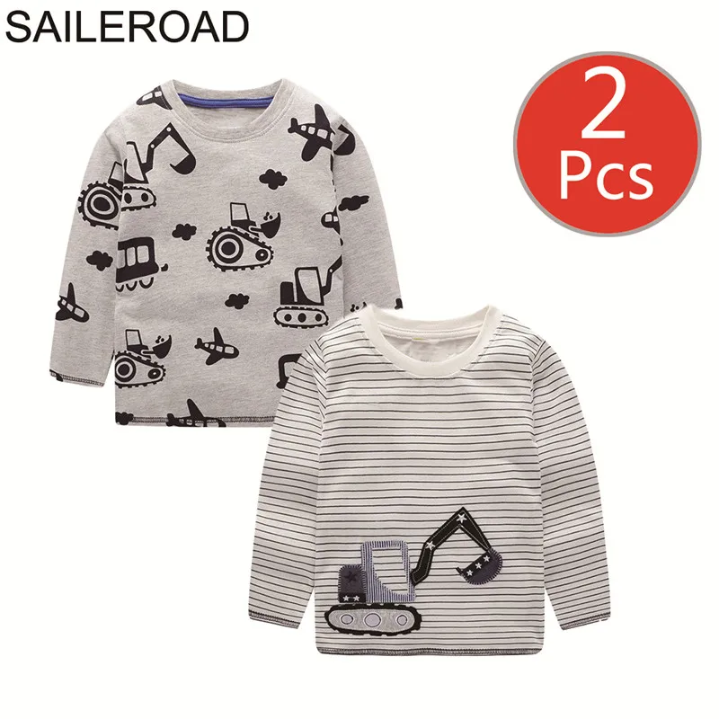 SAILEROAD 2Pcs Dinosaur Print Boys Long Sleeve Tops New Cartoon Children t-shirts for Autumn Baby Girls Long Sleeve Clothes