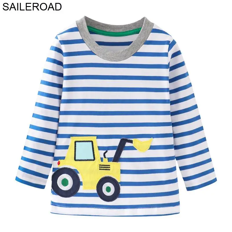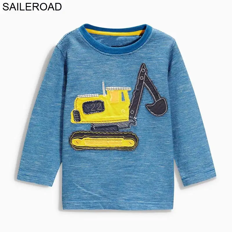 SAILEROAD Excavator Vehicle Children’s t-shirt 2pcs Cotton Baby Boys Long Sleeve Shirts Autumn for Kids Clothes