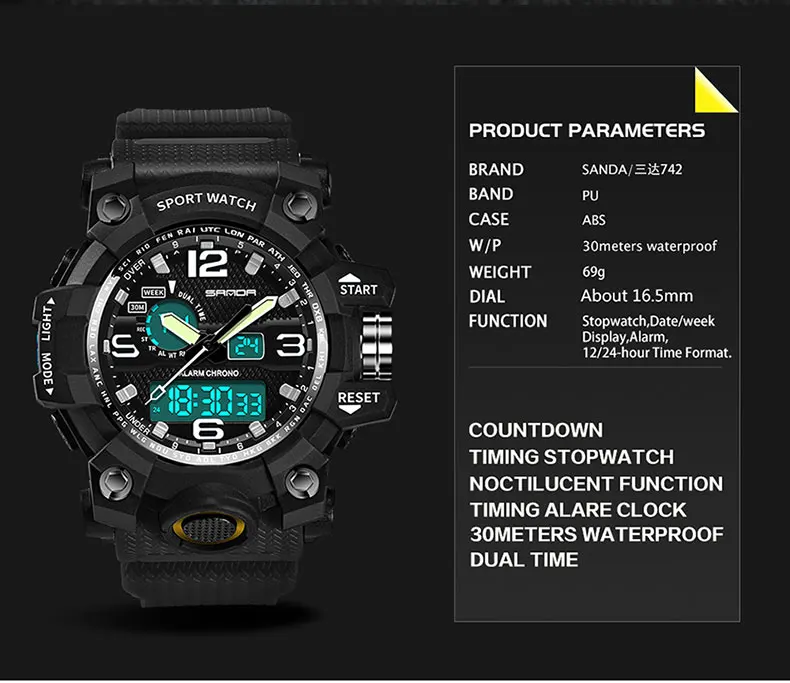SANDA top luxury brand G style men’s military sports watch LED digital watch waterproof men’s watch Relogio Masculino