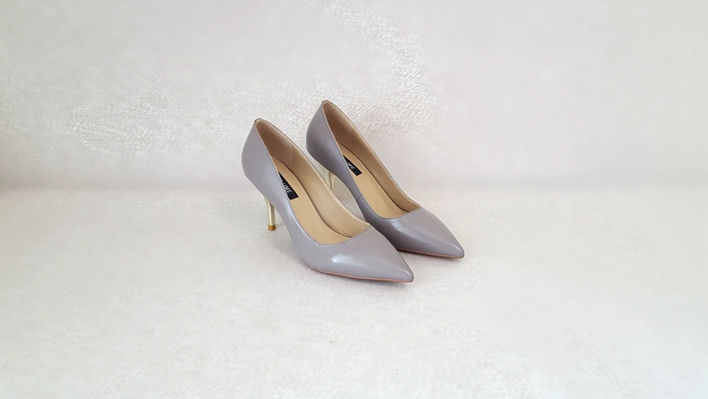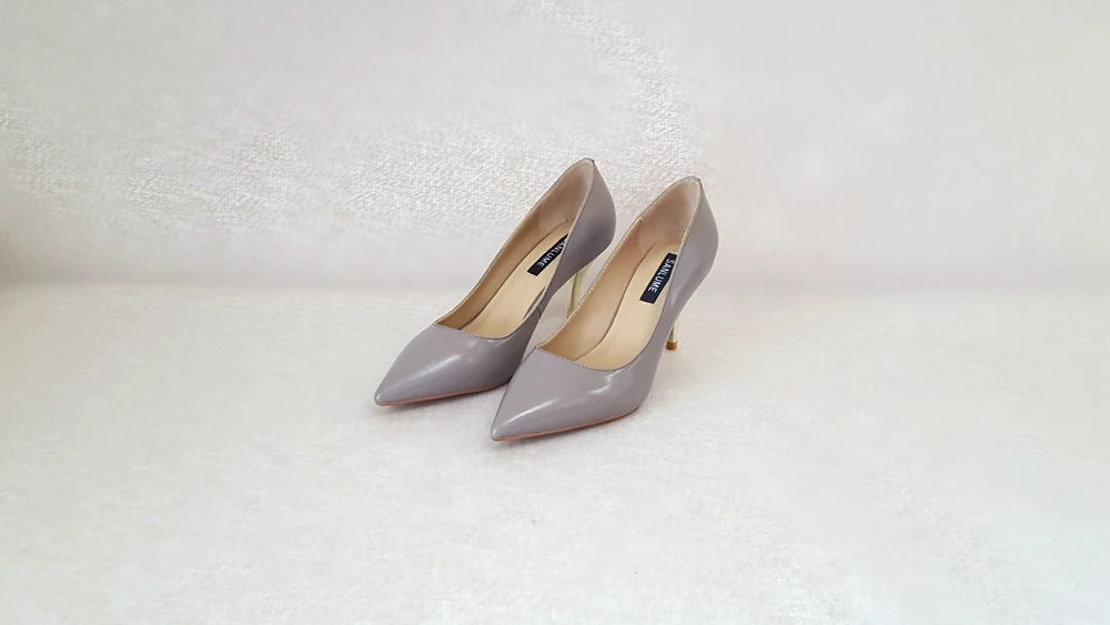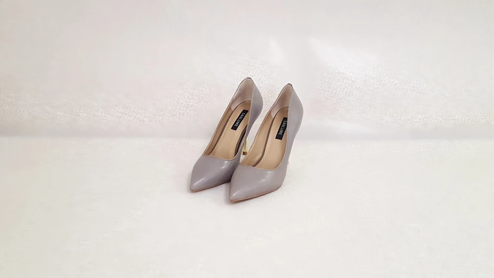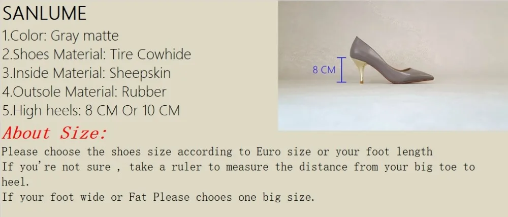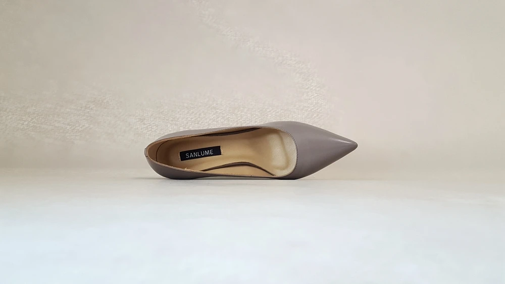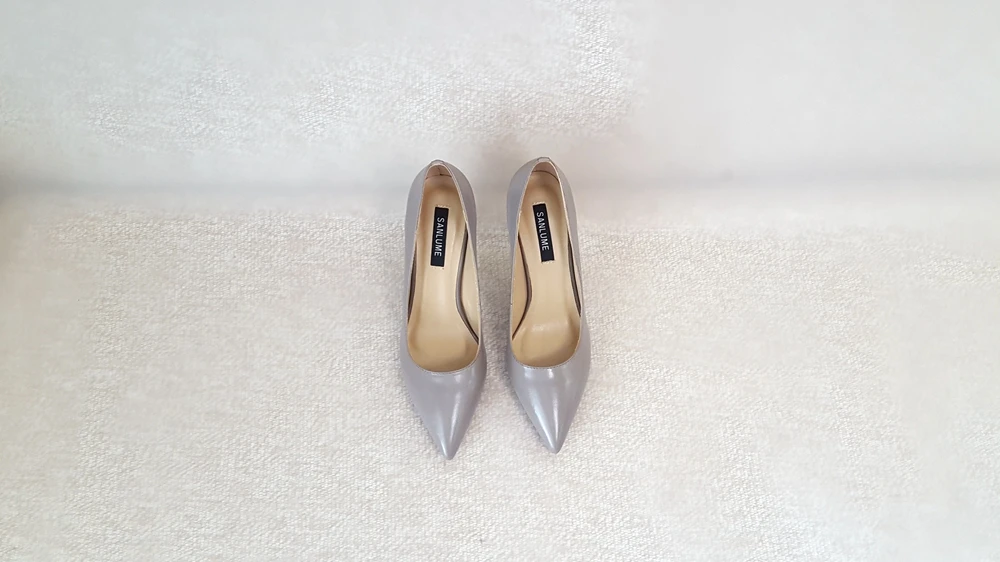 SANLUME Women Sexy Genuine leather High heels Basic Model Pumps Lady Pointed Toe Pink Nude Wedding shoes inside sheepskin
