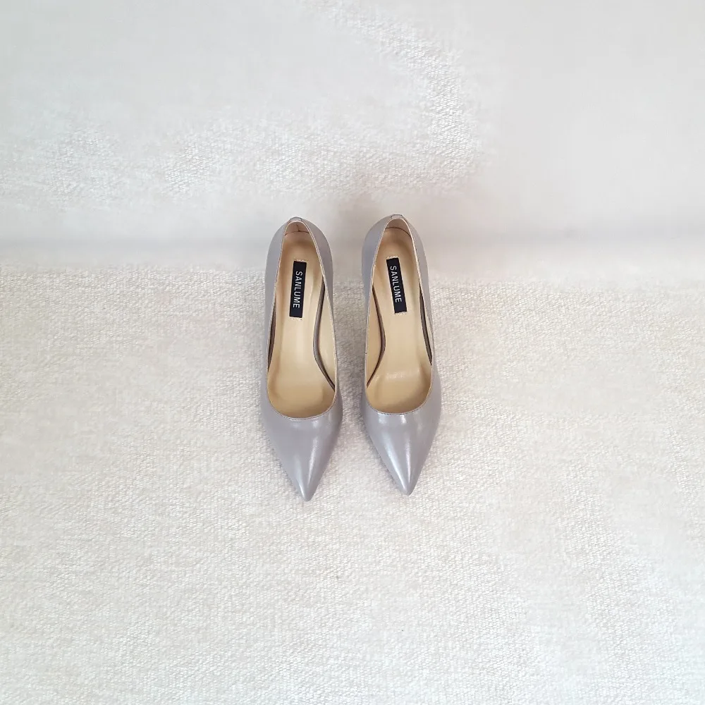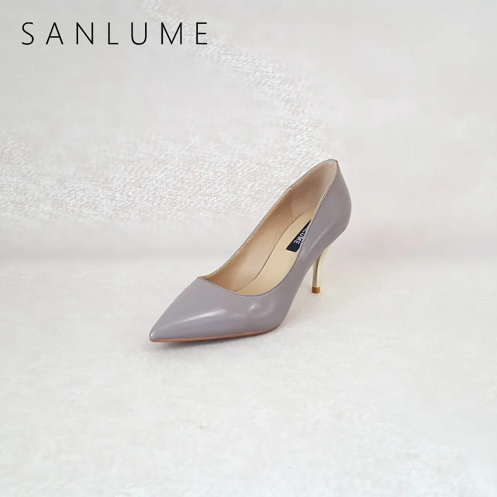 SANLUME Women Sexy Genuine leather High heels Basic Model Pumps Lady Pointed Toe Pink Nude Wedding shoes inside sheepskin