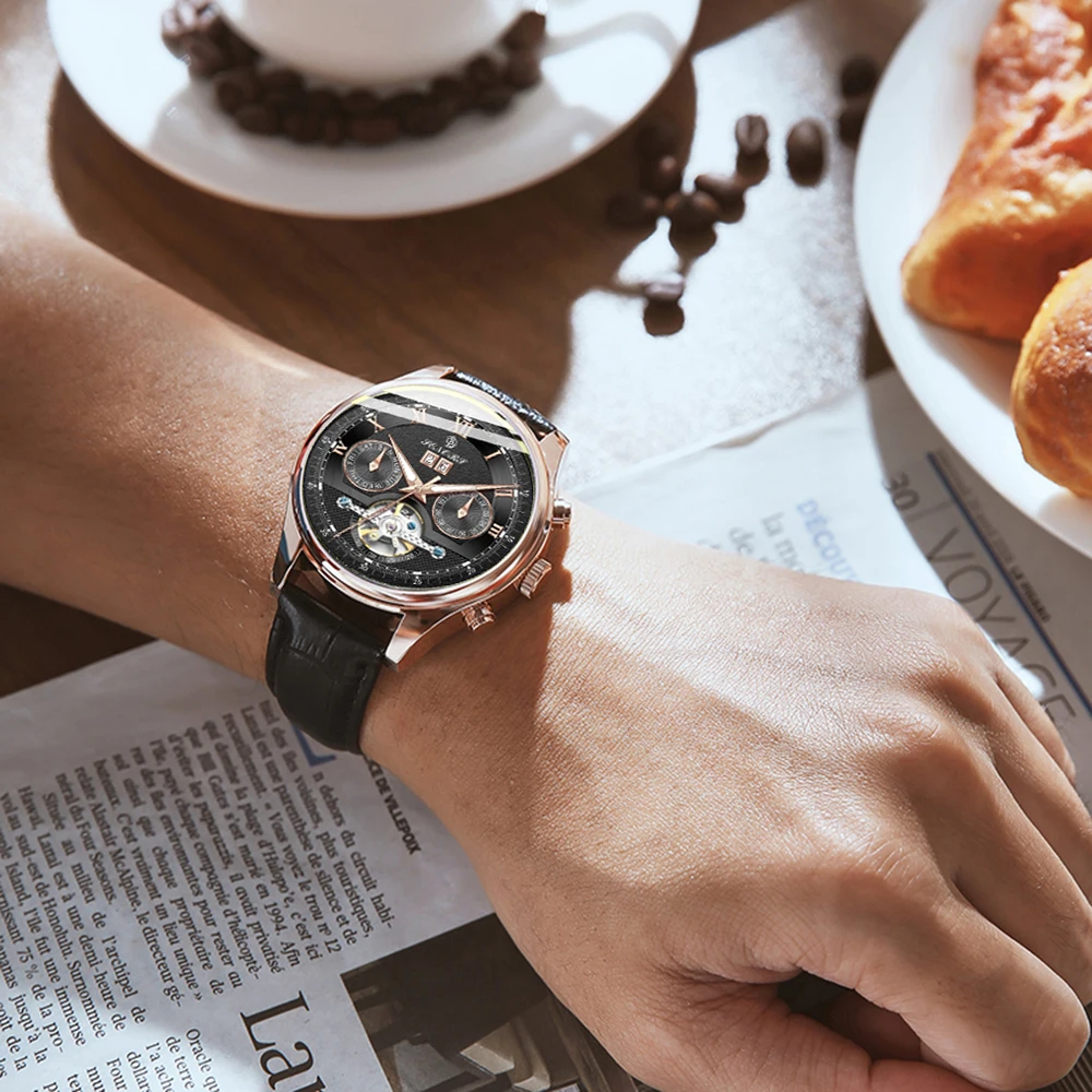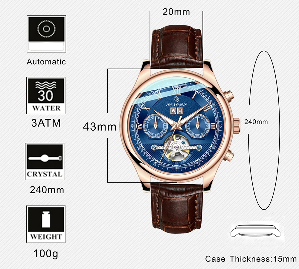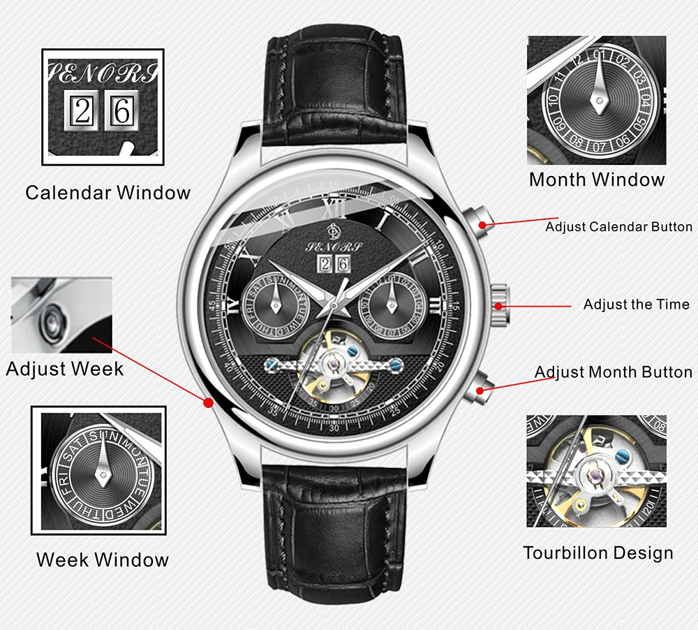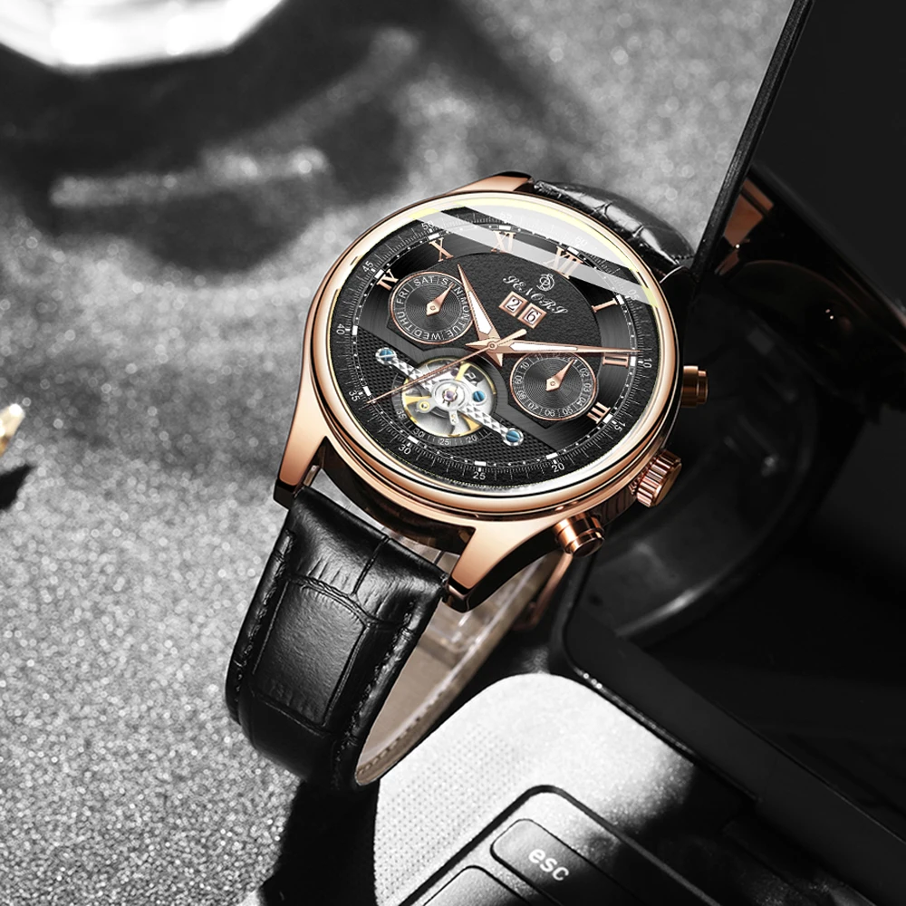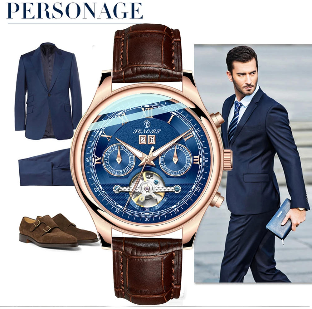 Senors Brand Luxury Men Watches Automatic Black Watch Men Stainless Steel Waterproof Business Sport Mechanical Wristwatch