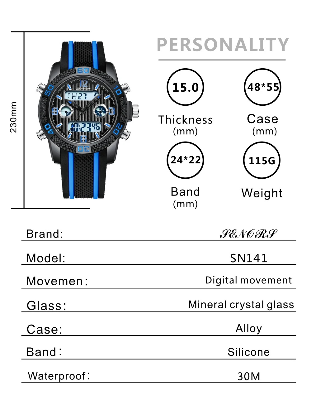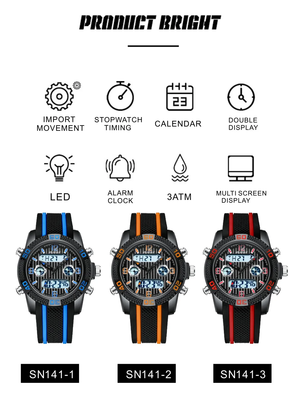 Senors Digital watch Men Multifunction Watches Fashion Outdoor Sport Watch Alarm Clock Chrono 3Bar Waterproof reloj hombre
