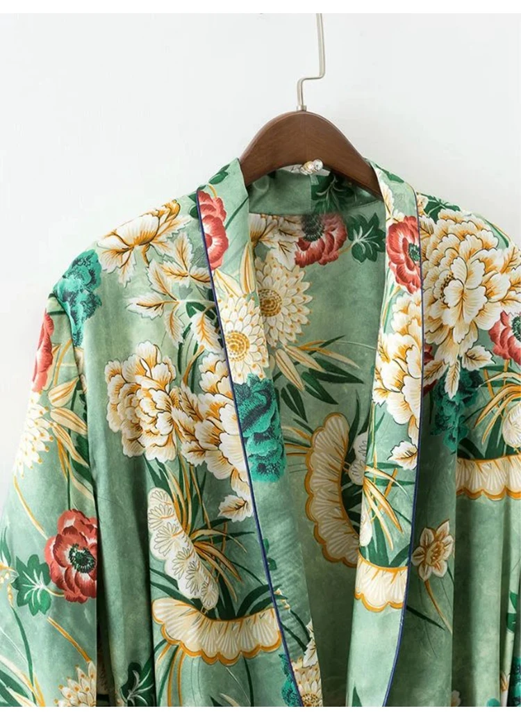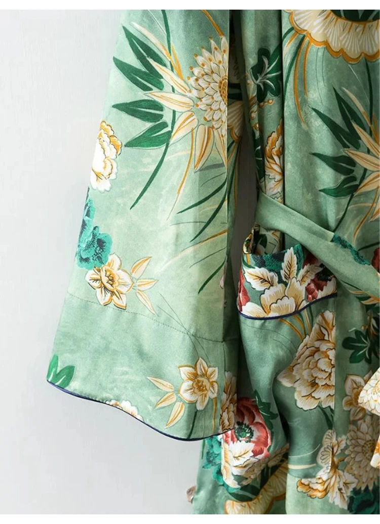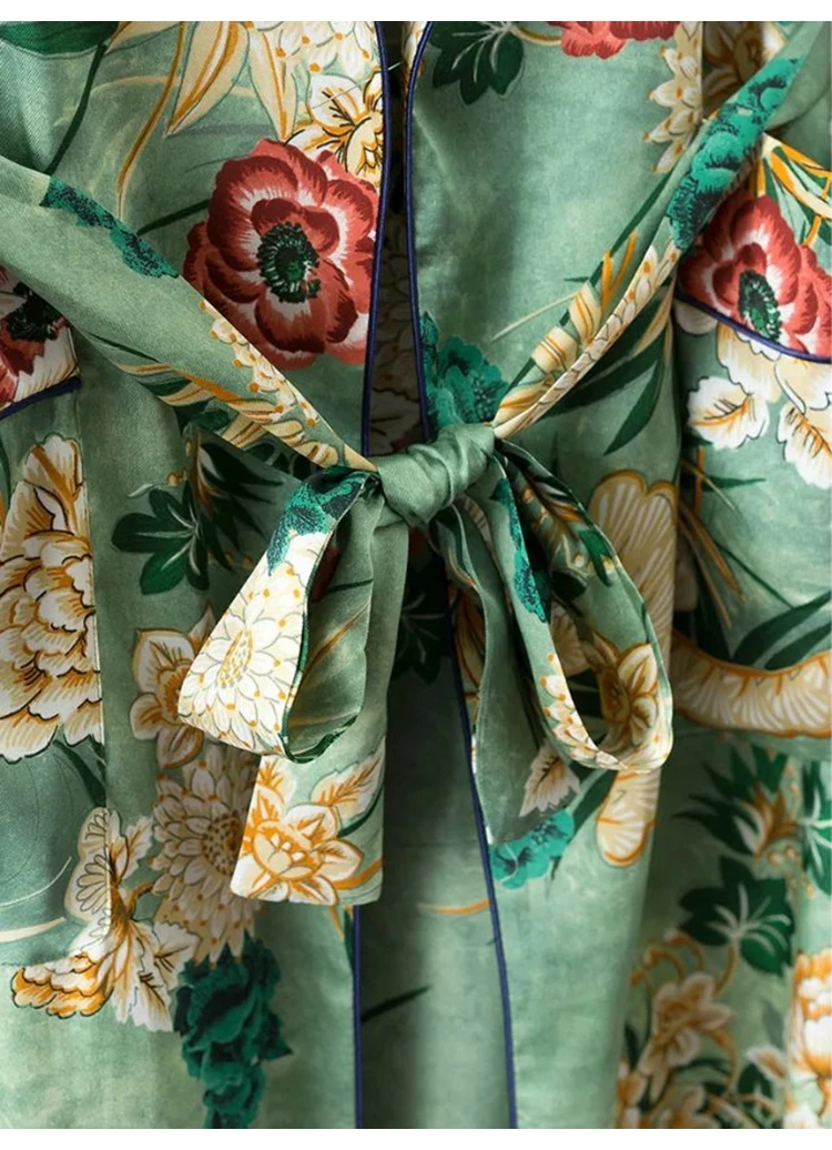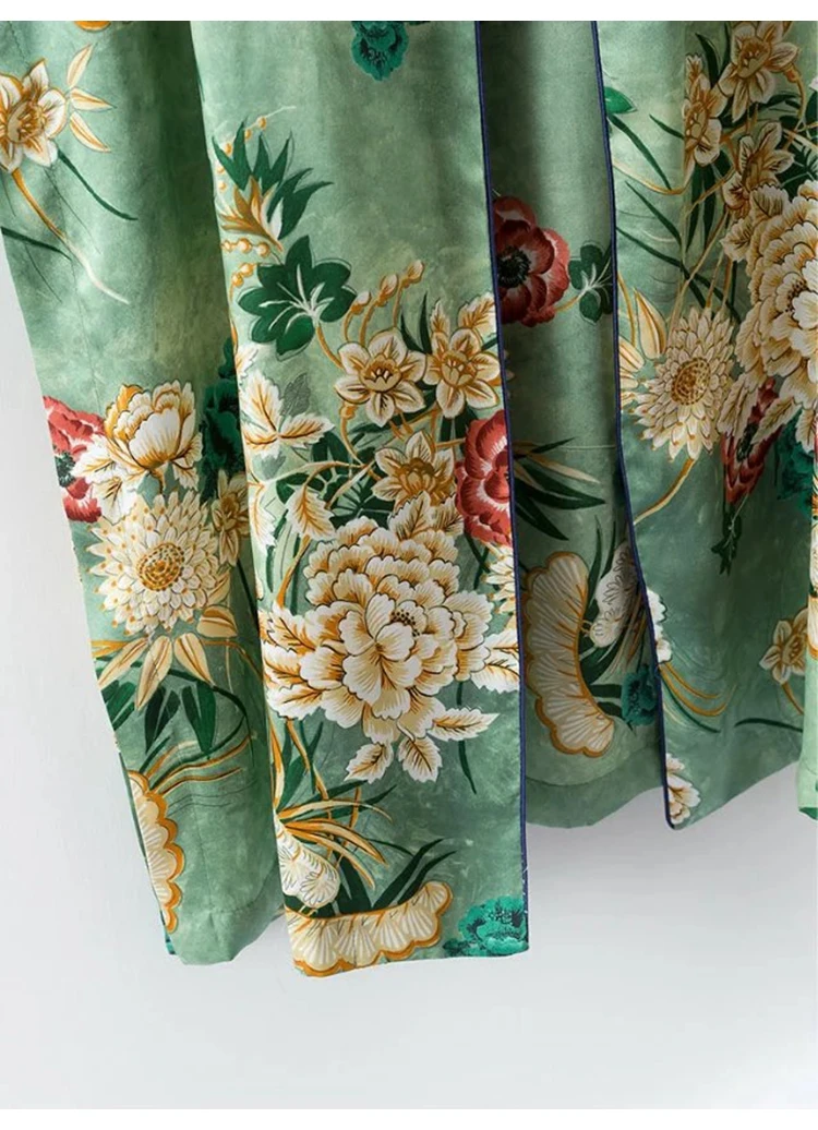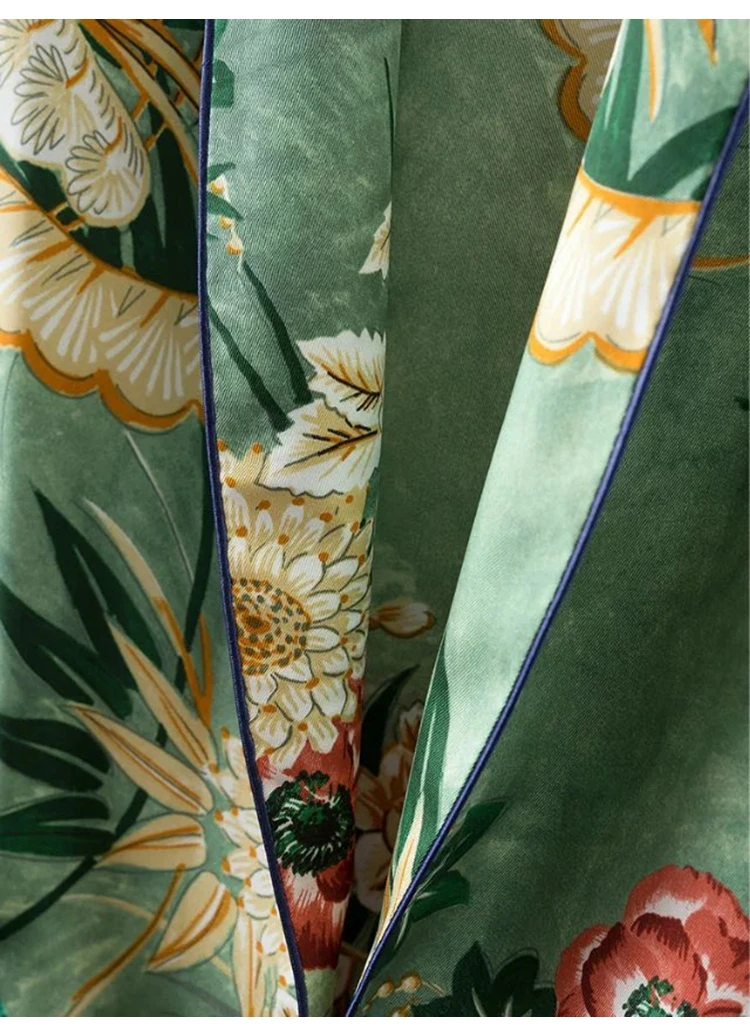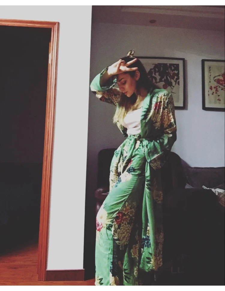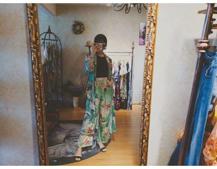 Set female 2018 summer new Japanese temperament fashion long kimono + high waist wide leg pants elegant thin suit