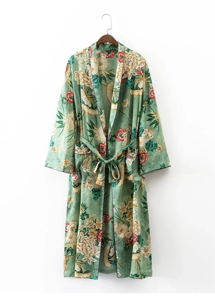 Set female 2018 summer new Japanese temperament fashion long kimono + high waist wide leg pants elegant thin suit