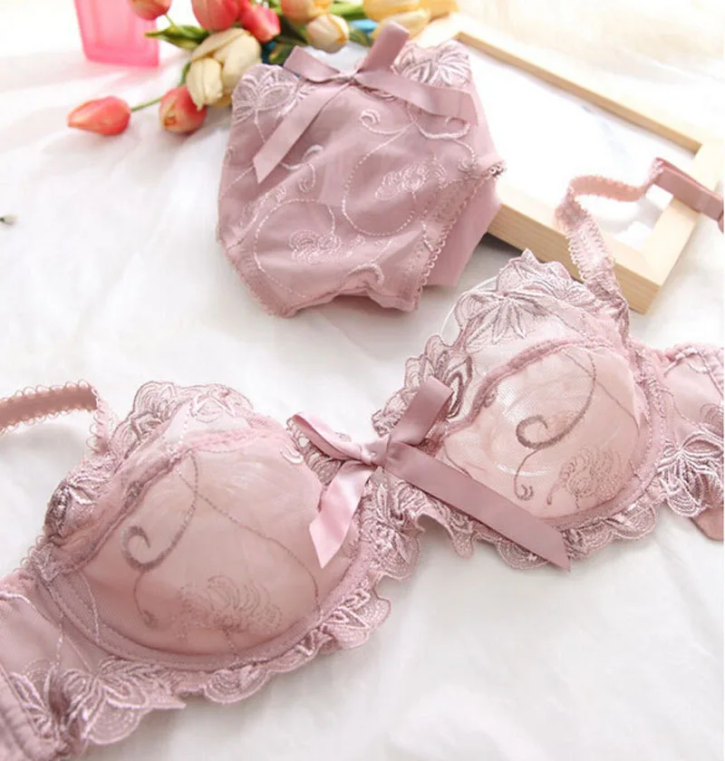 Sexy lace single large size bra sets embroidery breathable bra bra breasted gather Transparent Women’ underwear brief for women
