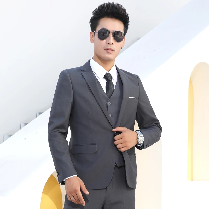 Shenrun Men Suits Slim Business Formal Casual Classic Suit Wedding Groom Party Prom Single Breasted Color Black Gray Navy Blue
