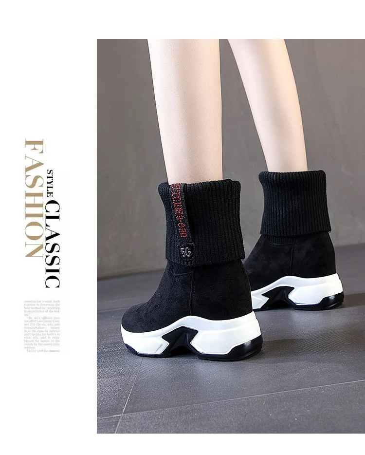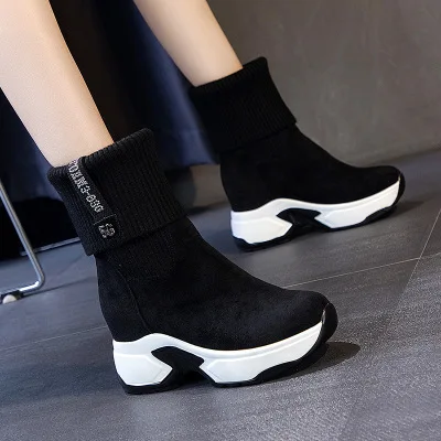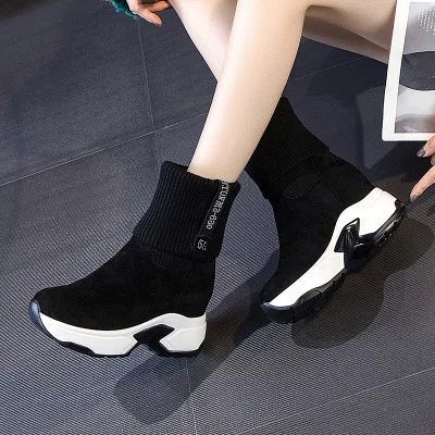 Short boots women autumn and winter new thick-bottomed Martin boots women increased casual elastic socks shoes women