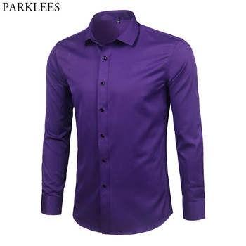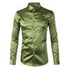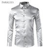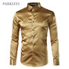 Silk Shirt Men 2017 Satin Smooth Men Solid Tuxedo Shirt Business Chemise Homme Casual Slim Fit Shiny Gold Wedding Dress Shirts