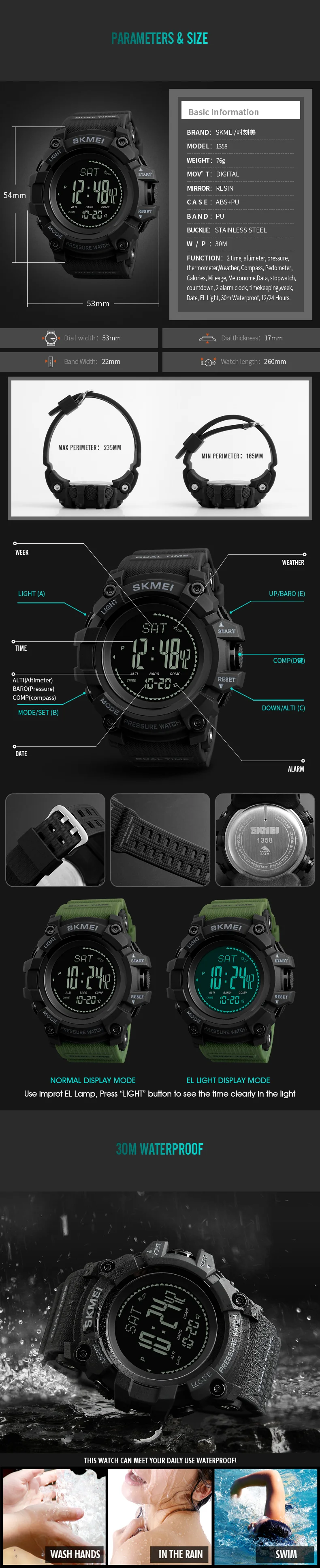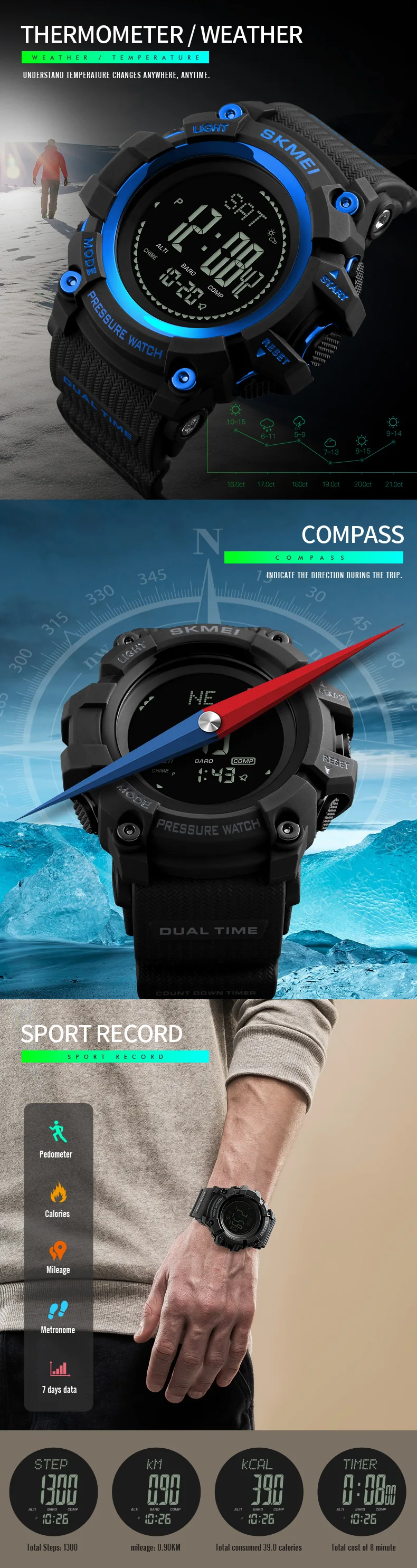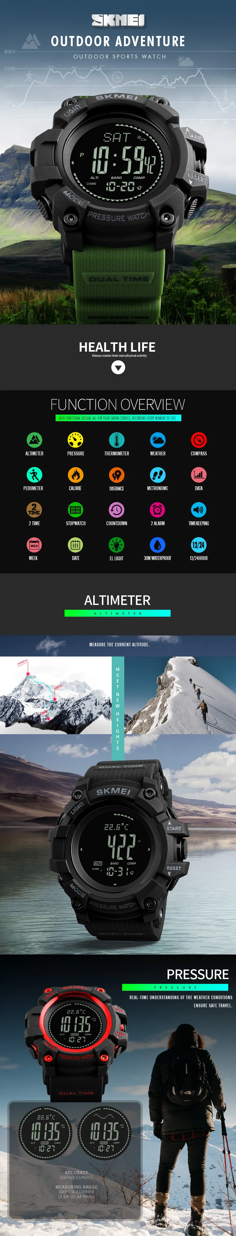 SKMEI Brand Mens Sports Watches Hours Pedometer Calories Digital Watch Altimeter Barometer Compass Thermometer Weather Men Watch