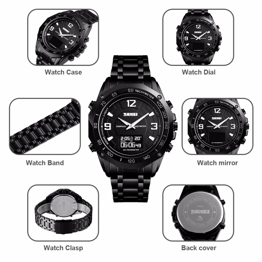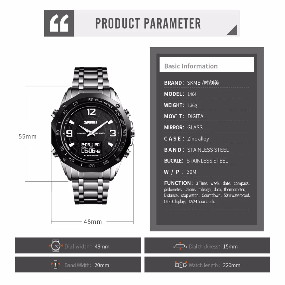 SKMEI Mens Digital Watches Military Compass Sport Watches Countdown Waterproof Alarm Calorie Calculation Men Quartz Wristwatches