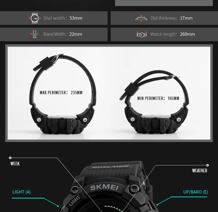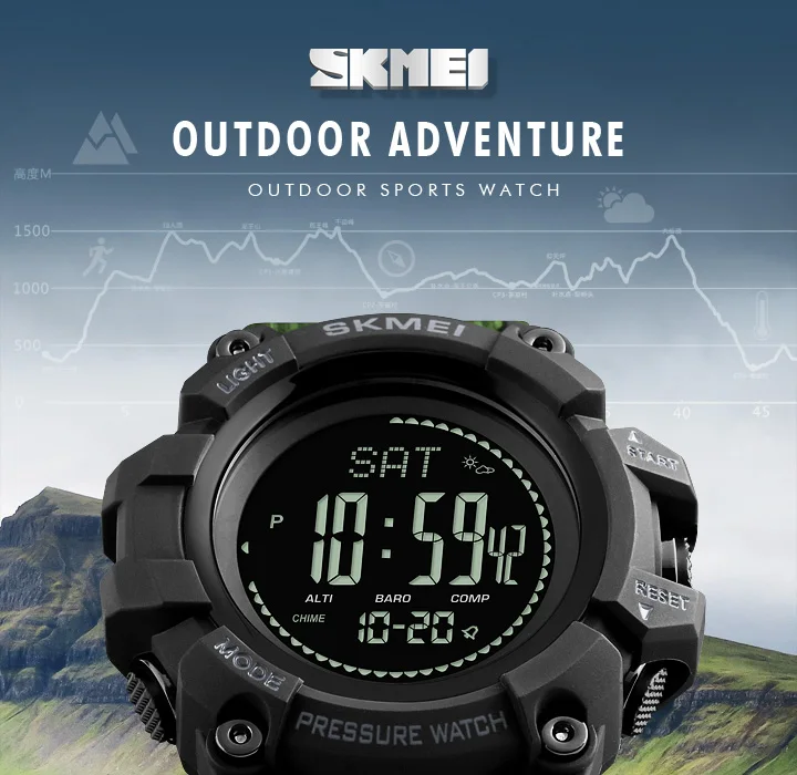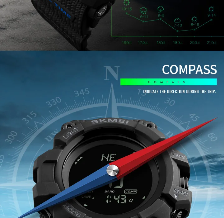 SKMEI Mens Sport Watch Fashion Men’s Digital Watch Altimeter Barometer Compass Temperature Weather Electronic Luxury Men Watches