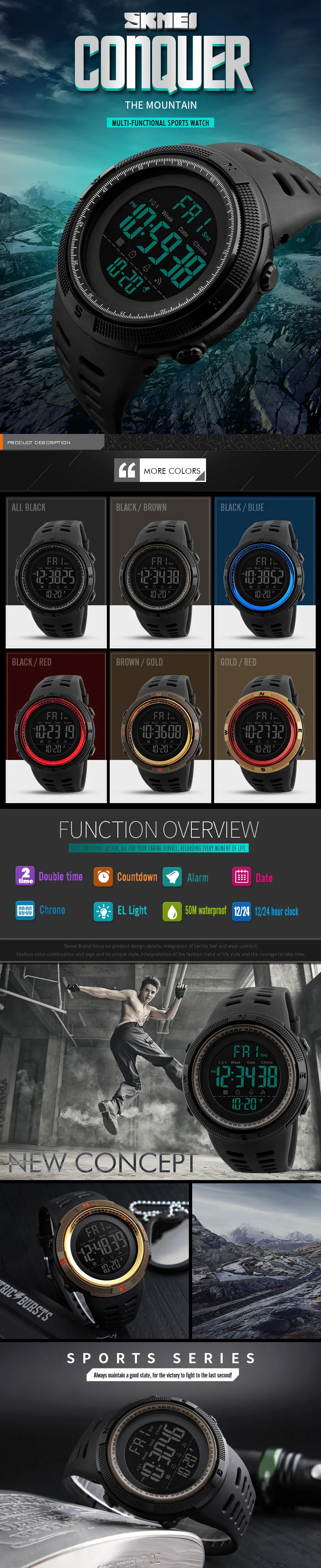 SKMEI Mens Sports Watches Top Luxury Brand Chrono Countdown Men LED Digital Wristwatches Male Military Clock Relogio Masculino