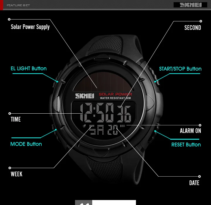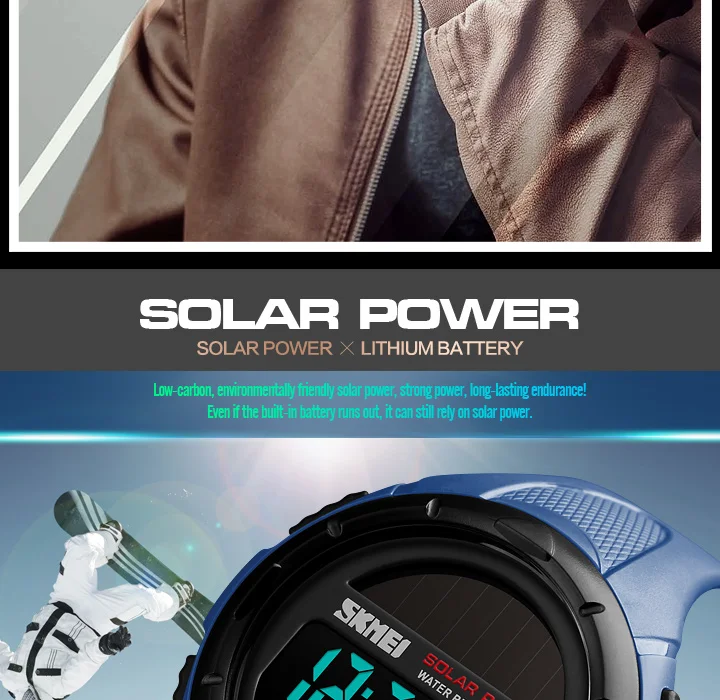 SKMEI Military Sport Watches Men Solar Power Outdoor Shock Digital Watch Chrono 50M Water Resistant Wristwatches reloj deportivo