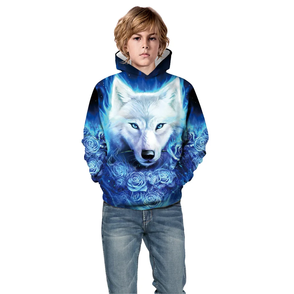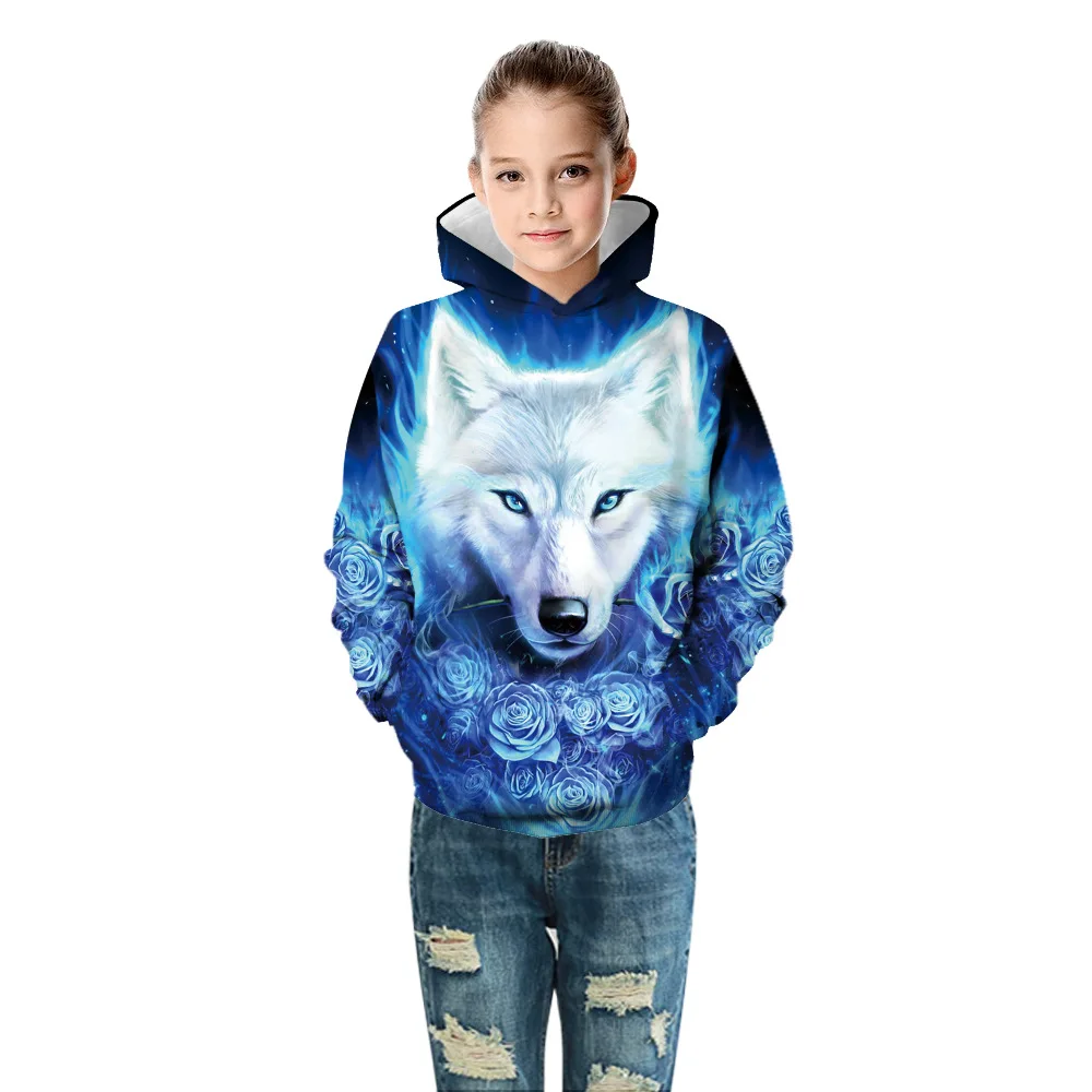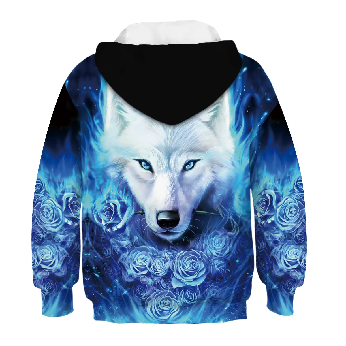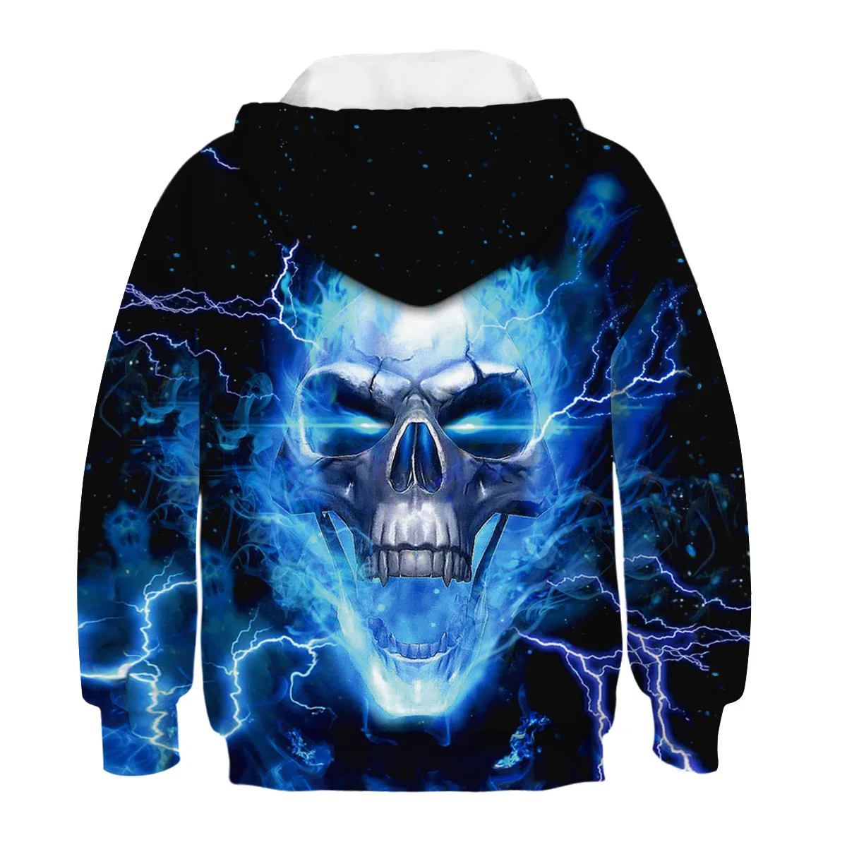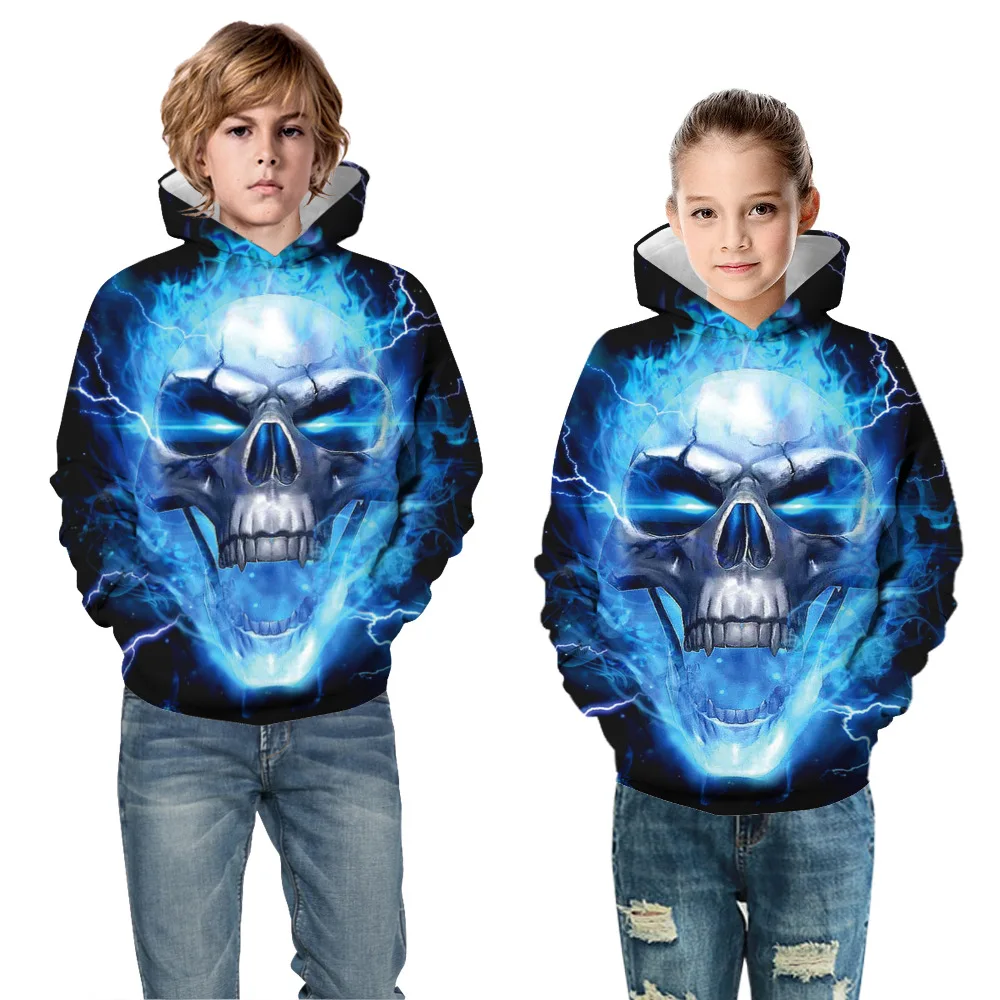 Skull Wolf Printed Children Sweatshirt with Cap Long Sleeve Casual Cartoon Pullovers Teenage Boys Girls Sportwear Hoodie Clothes