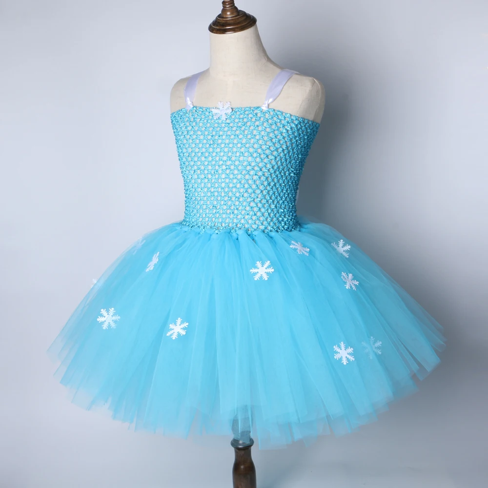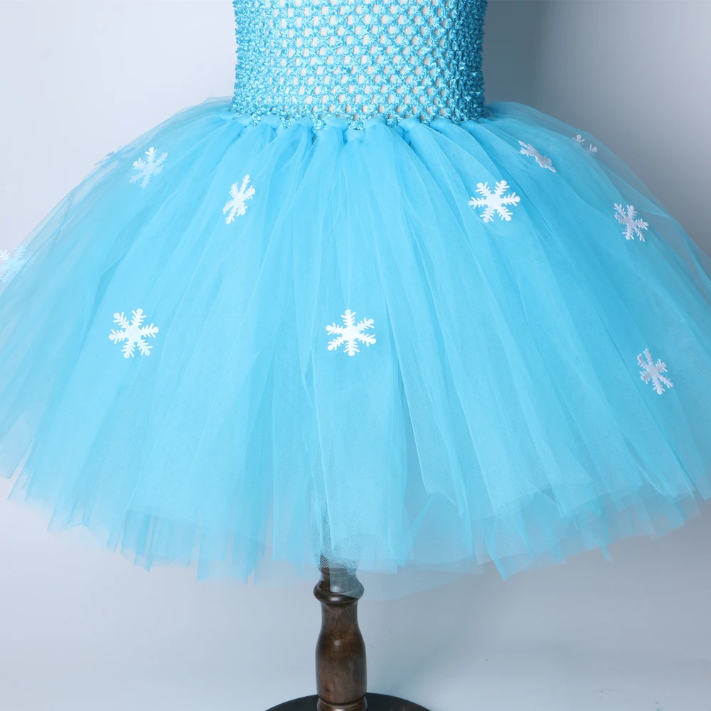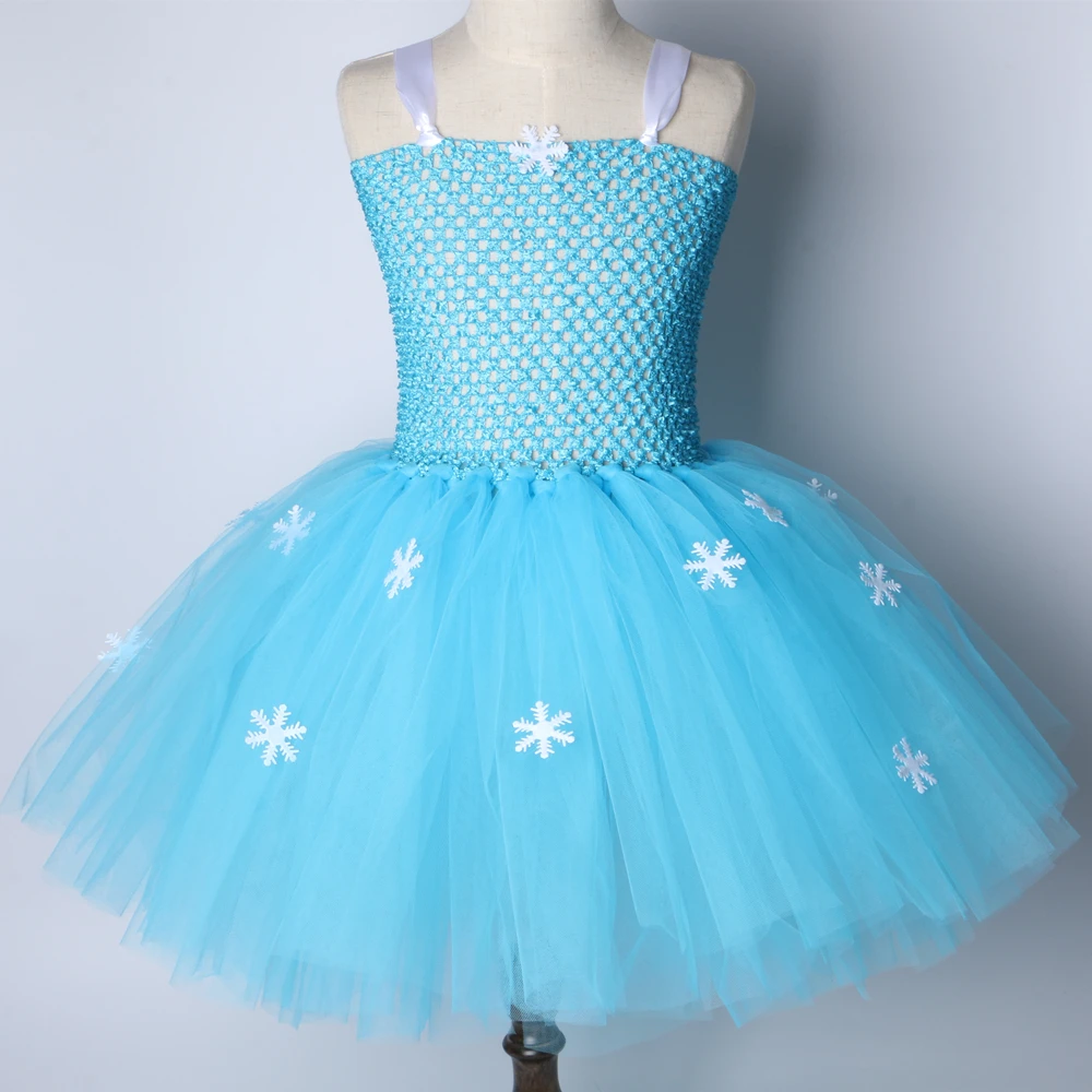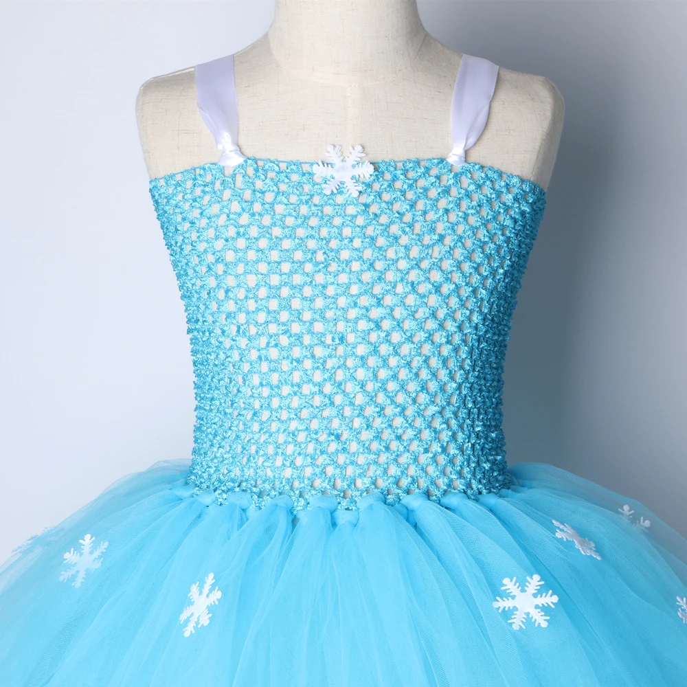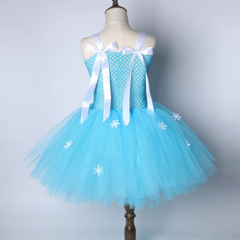 Sky Blue Princess Elsa Tutu Dress Snow Flake Child Kids Birthday Party Tutu Dresses For Girls Halloween Christmas Costume 2-12Y