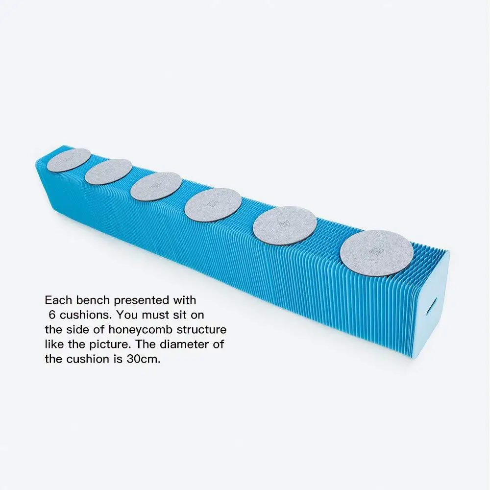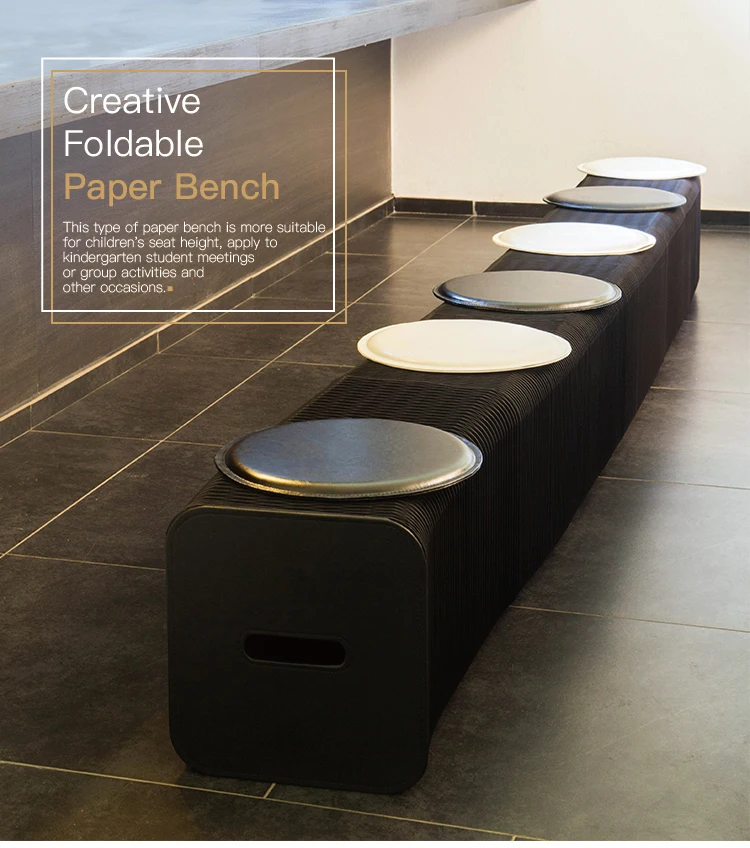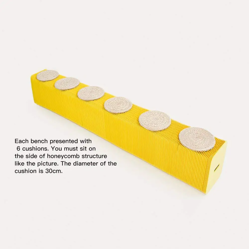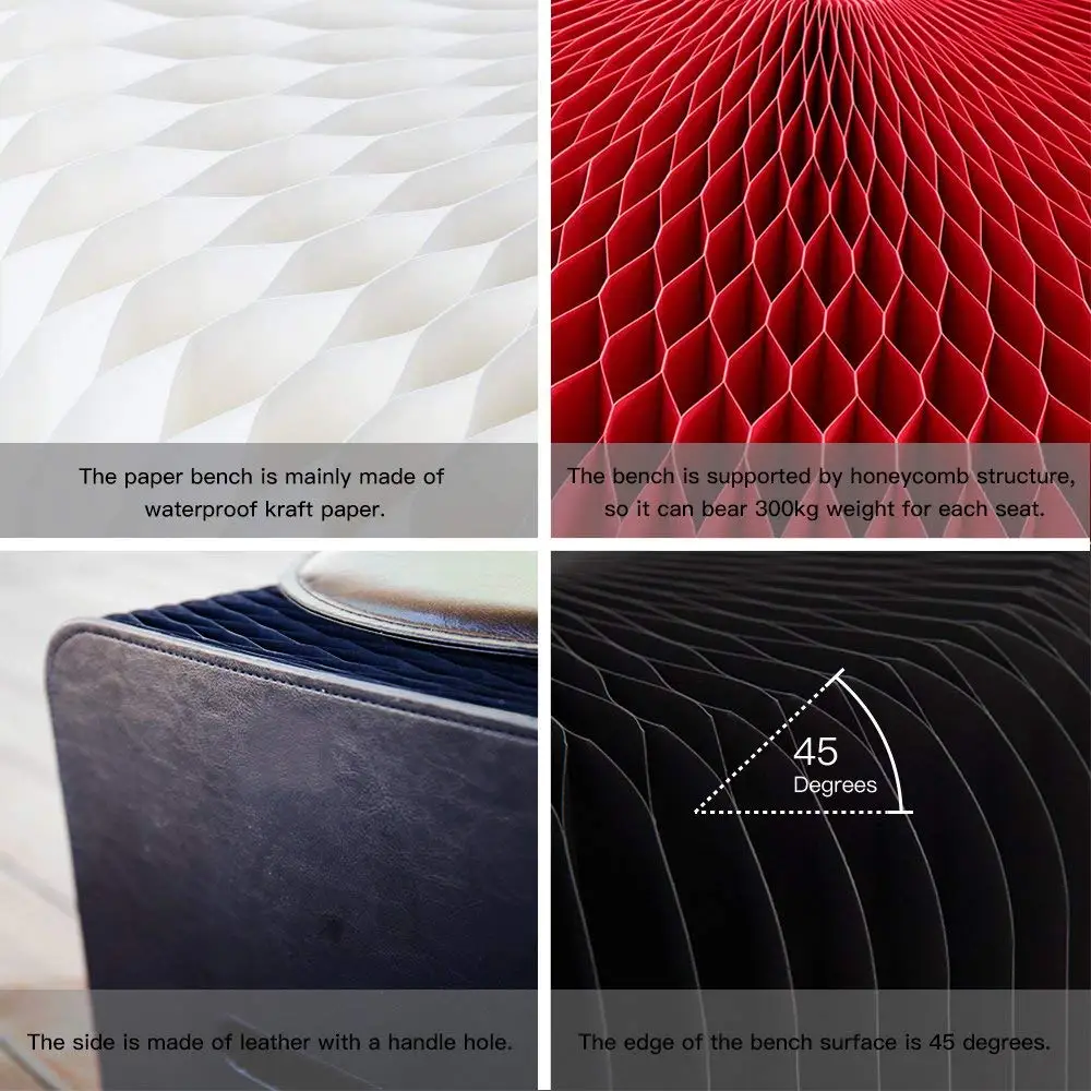 Paper bench is interesting, flexible and varied; You can place any shape you want or keep it changing according to the actual space. It can be used as an extra seat and footstool. The material of the paper stool is kraft paper, and the paper is glued into honeycomb structure by using environmental glue. We are sure it will bring you a unique interactive experience.
