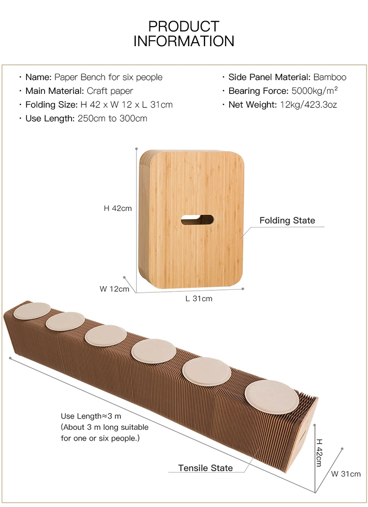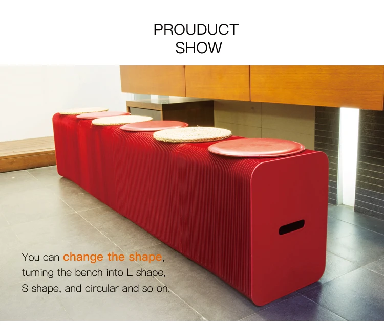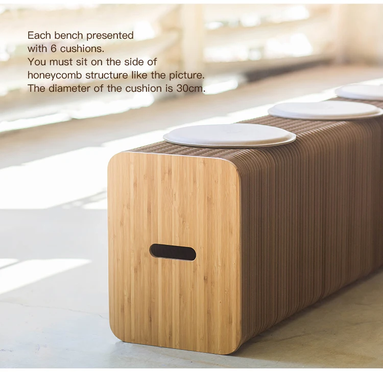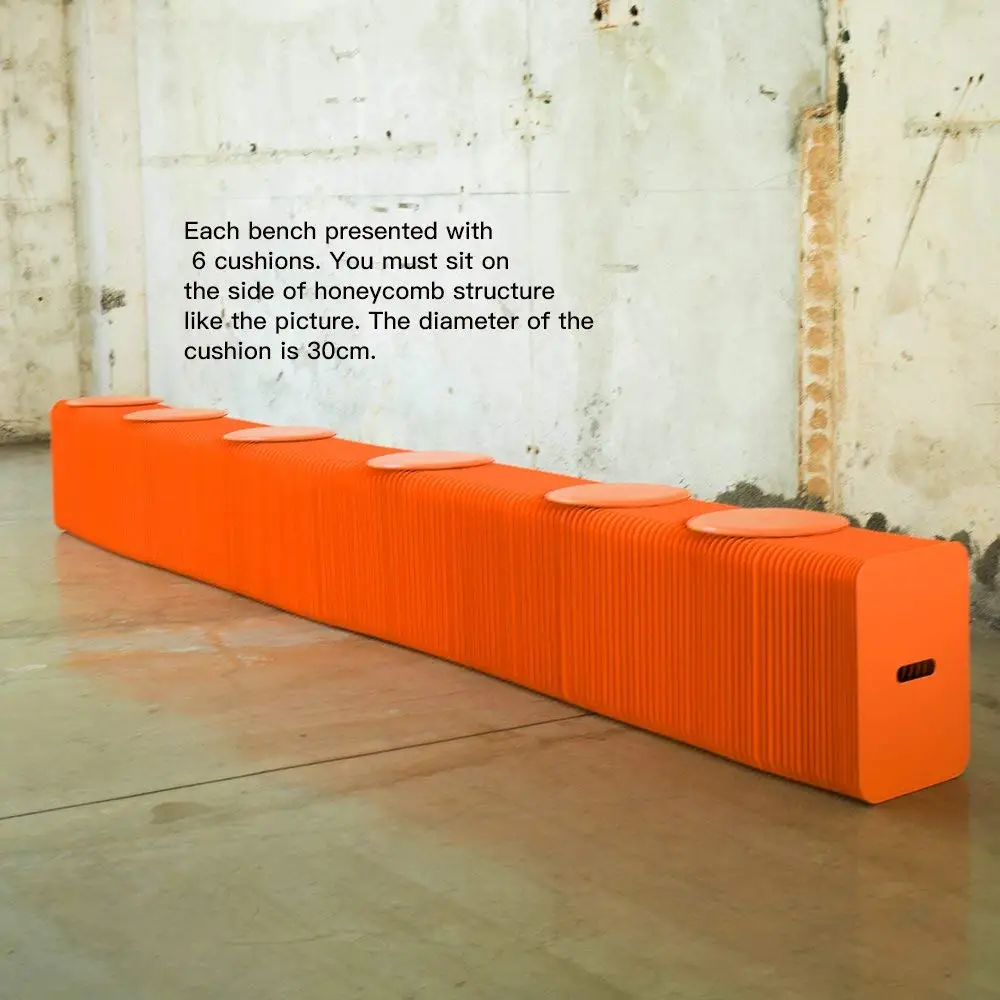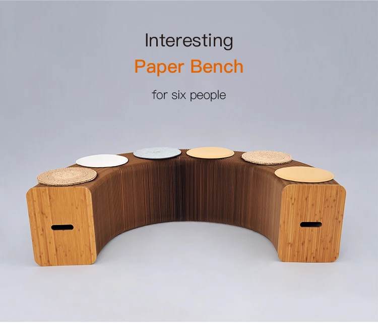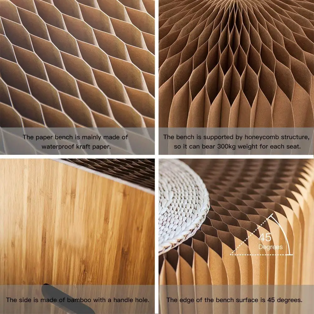 Paper bench is interesting, flexible and varied; You can place any shape you want or keep it changing according to the actual space. It can be used as an extra seat and footstool. The material of the paper stool is kraft paper, and the paper is glued into honeycomb structure by using environmental glue. We are sure it will bring you a unique interactive experience.
